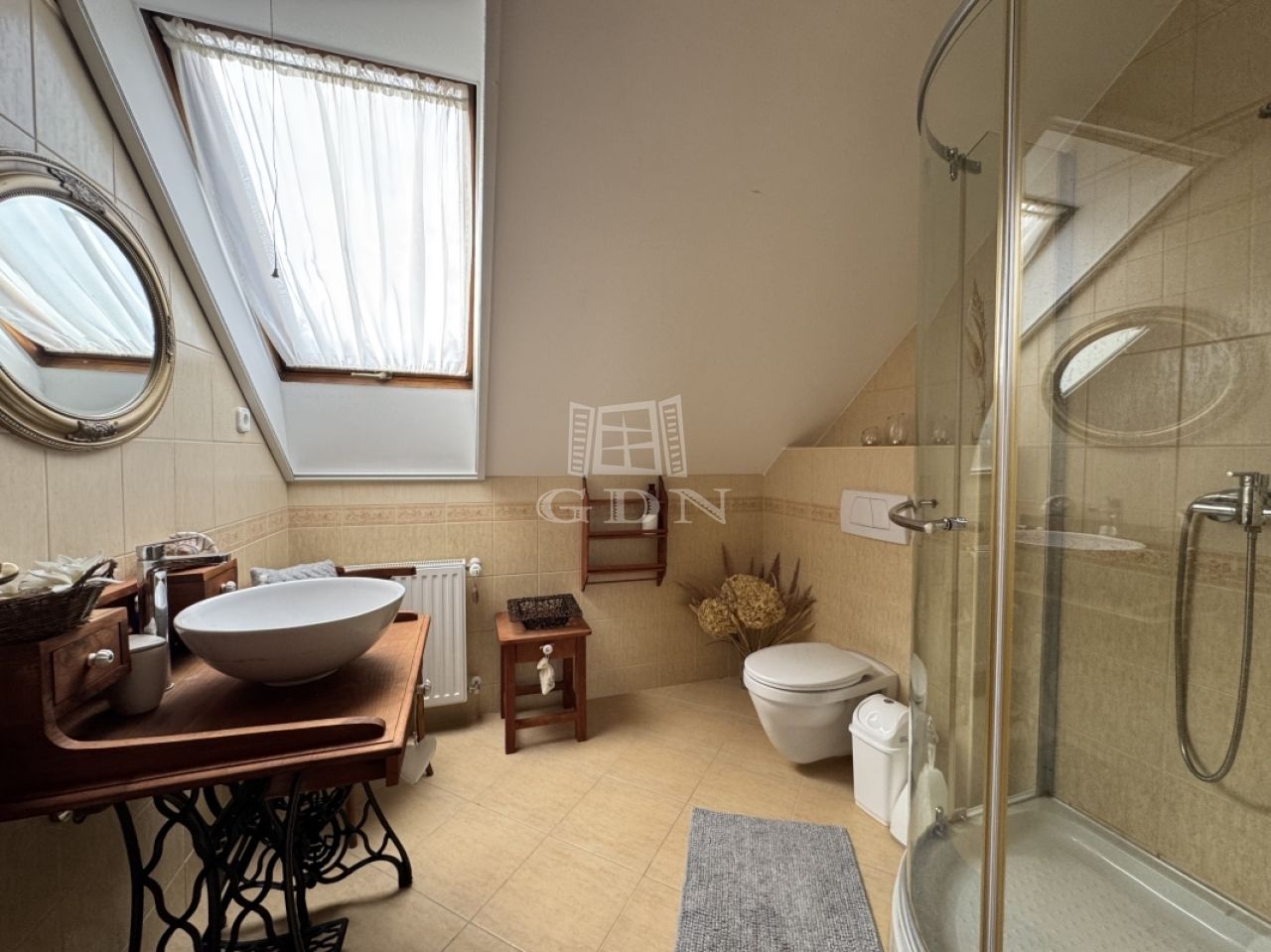 A hőszigetelt, 3 rétegű üvegezésű nyílászárók, a magas minőségű hideg- és melegburkolatok, a dizájnos falpanelek, valamint a tetőtéri tölgy lazúros lambériaburkolat a természetes eleganciát és tartósságot képviselik.