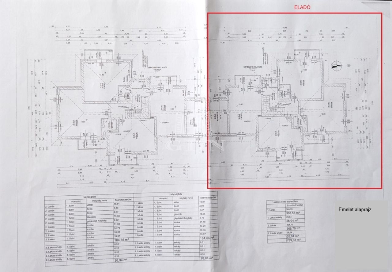 Both apartments of the house can be bought together, totaling 745.82 m² with 16 rooms over two floors. Price: 530 million HUF.