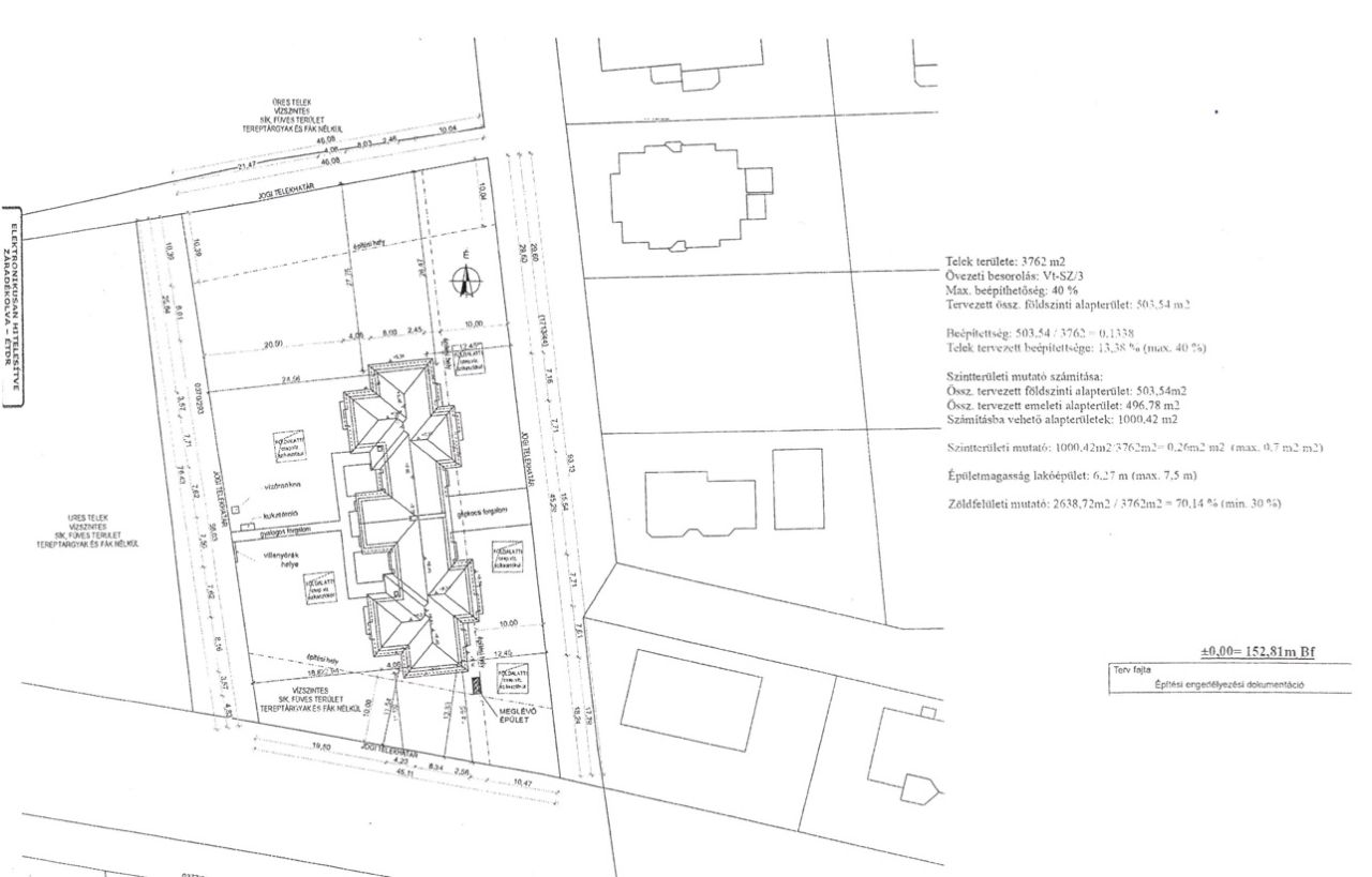 A telekre érvényes, elfogadott tervdokumentáció készült, amely az E-napló rendszerében feltöltve és jóváhagyva szerepel, így az építkezés folytatható. Az építkezés már megkezdődött, a jogszabályok szerint 2027 szeptemberéig szükséges befejezni!