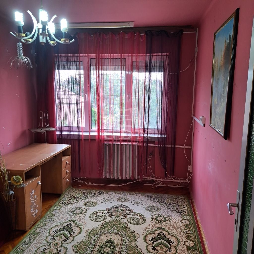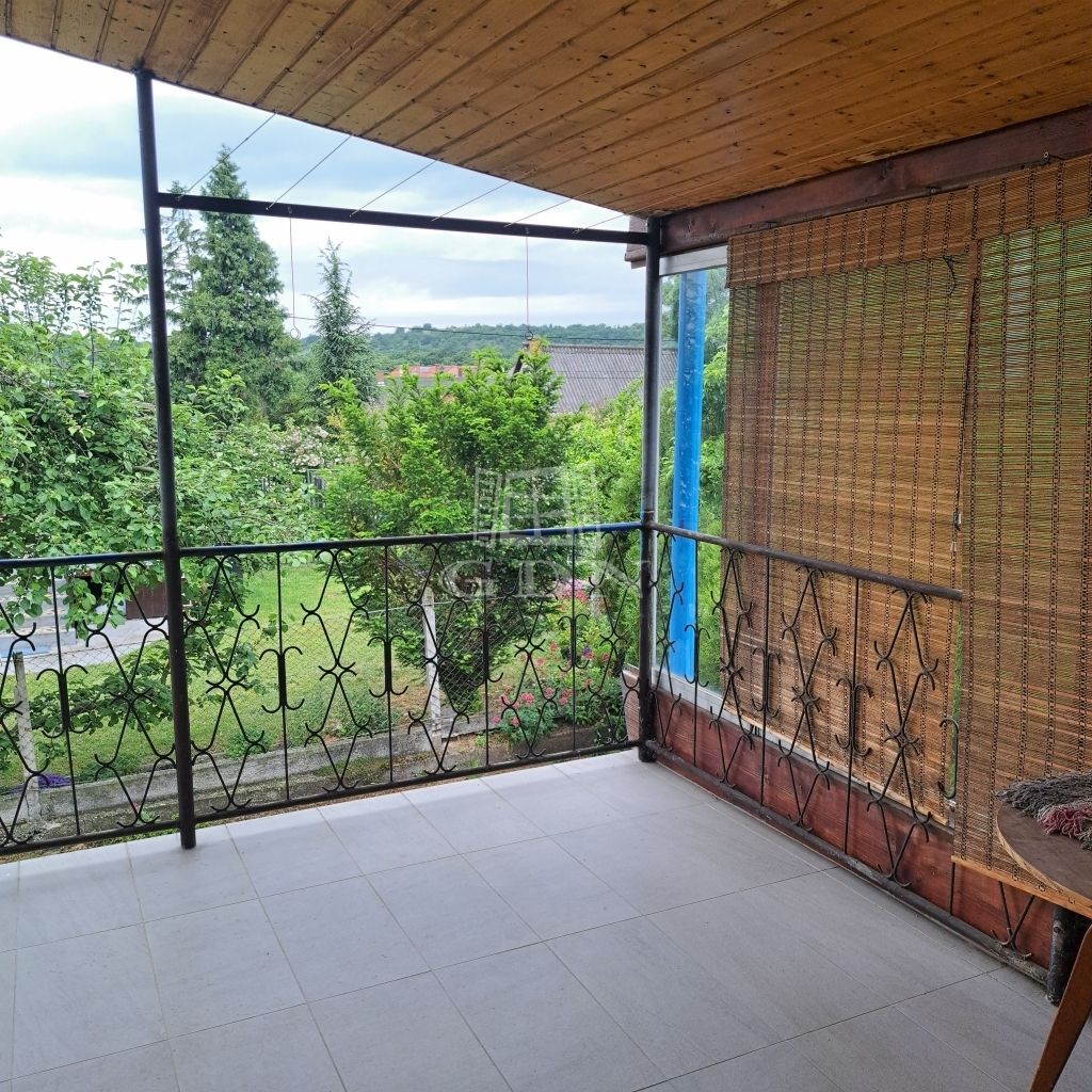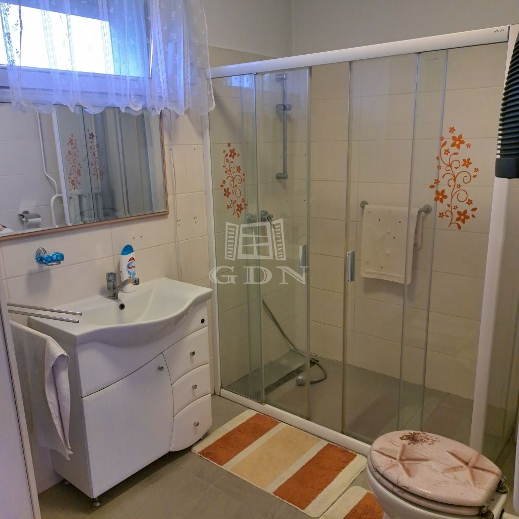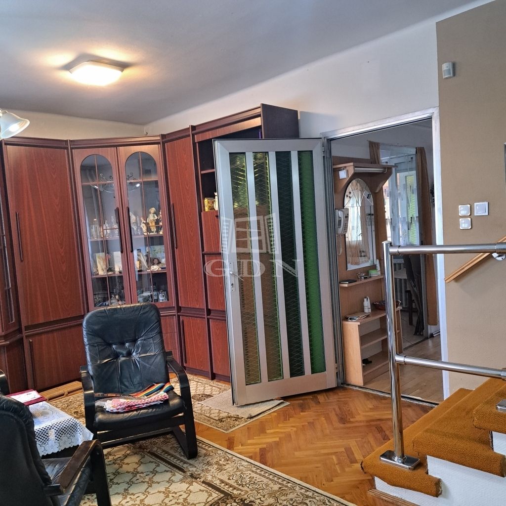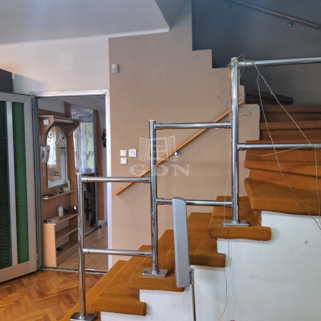 Innen nyílik  egy nagyobb méretű szoba, valamint a konyha, mosdó-WC-vel és a lépcsőlejáró a garázshoz. A szobában található a kényelmes feljáró az emeletre, ahol a 3 további szobába és a szép tágas és felújított fürdőszobába jutunk.