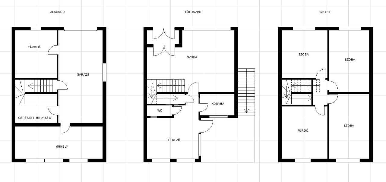 - A legalsó szinten pedig  a jókora garázs mellett 2 műhely kialakítása valósult meg, illetve itt találjuk még a gépezet helyiséget is.