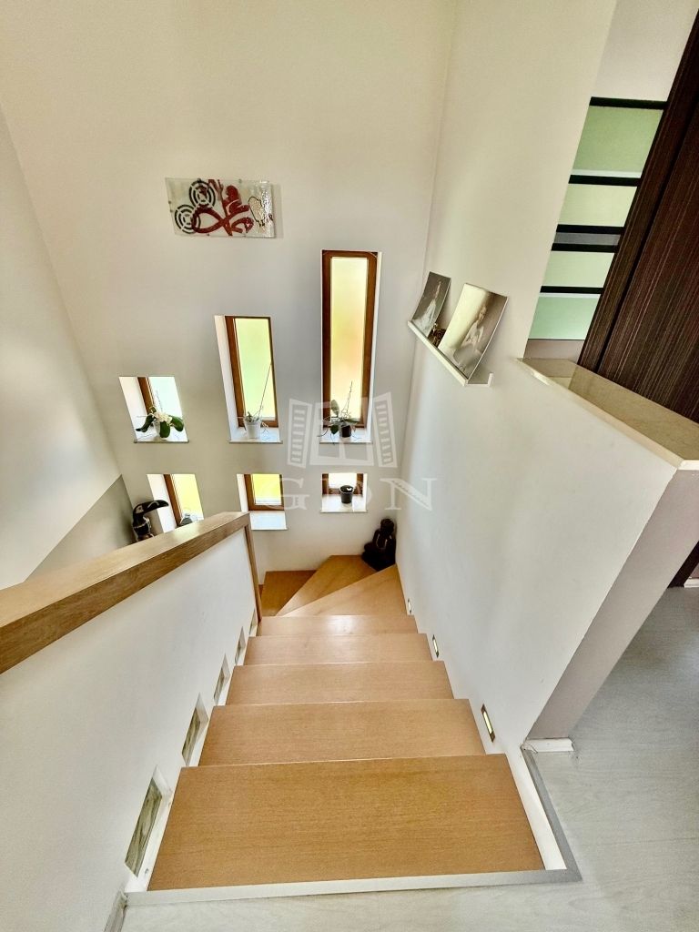 A kétszintes épület tágas és élhető terekkel rendelkezik, 4 külön nyíló hálószobája van, és az összes helység jól átgondolt, kényelmesen élhető tervek alapján készült.