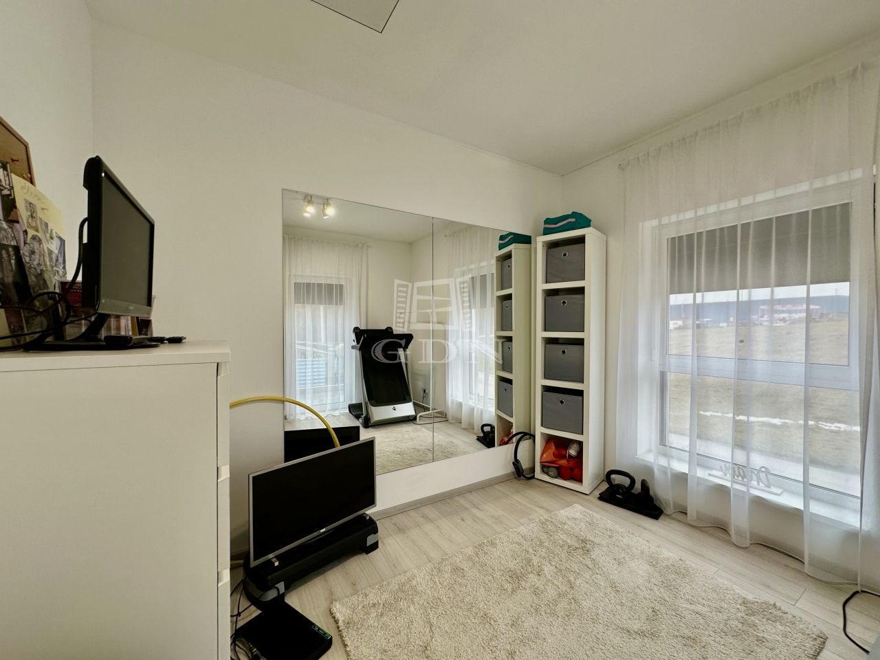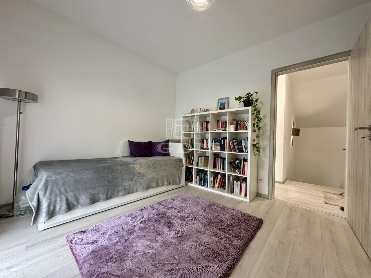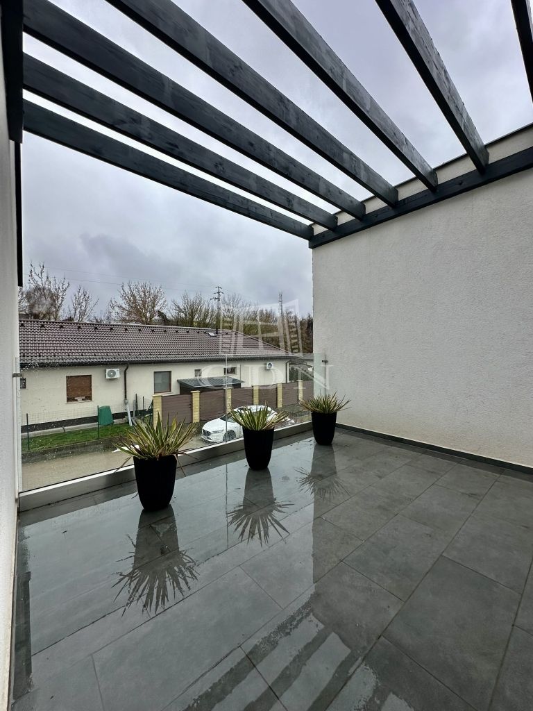 Az emeleten három különnyíló hálószoba, fürdőszoba, közlekedő, valamint egy 16 m²-es erkély és egy 22,8 m²-es tetőterasz kapott helyet, amelyek tovább növelik a komfortérzetet.