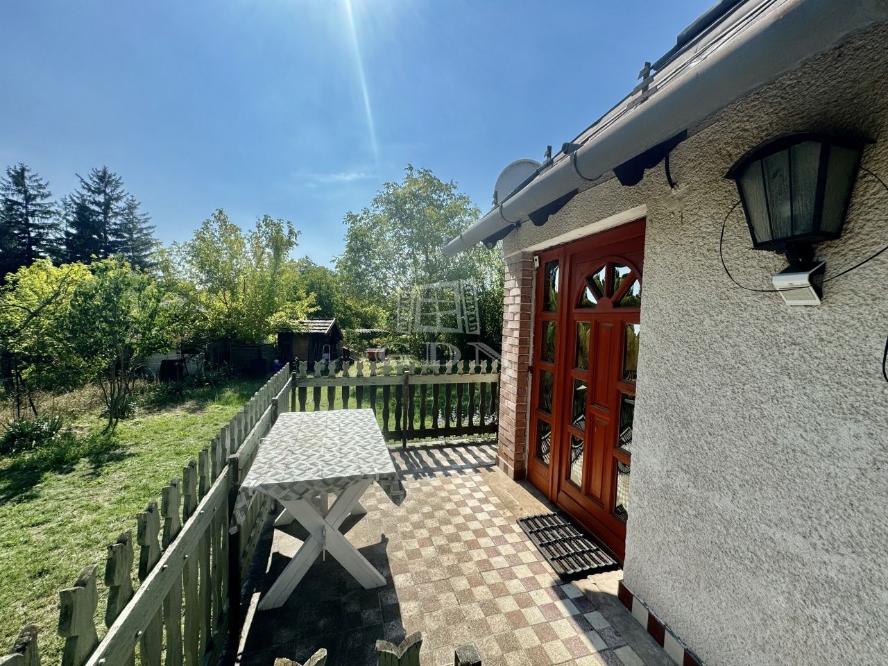 A kertet napfény simogatja, amit az utcától egy vasszerkezetre épült, fával burkolt úszókapu választ el. A kapu jelenleg manuális használható, de távvezérelhetővé alakítható. Az udvarban tudjuk leparkolni az autónkat, de a kapu előtt is kényelmesen meg lehet állni.