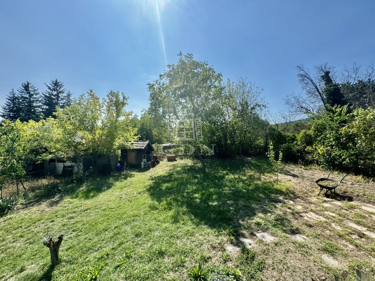 A tágas kert jól használható pihenésre, veteményes kialakítására, jelenleg is elhelyezkedik rajta néhány gyümölcsfa.