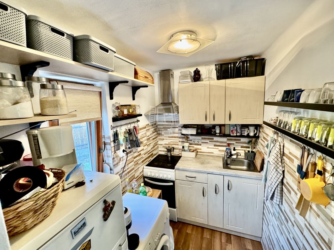 4,1 m²-es konyha, ami elektromos tűzhellyel van felszerelve