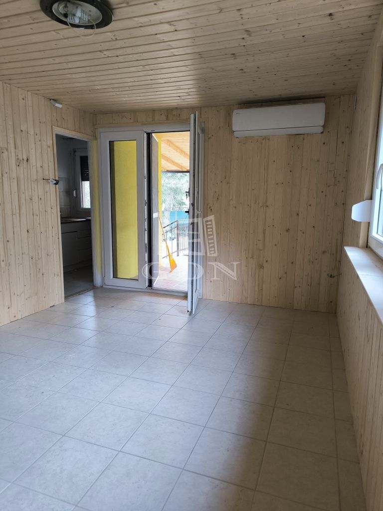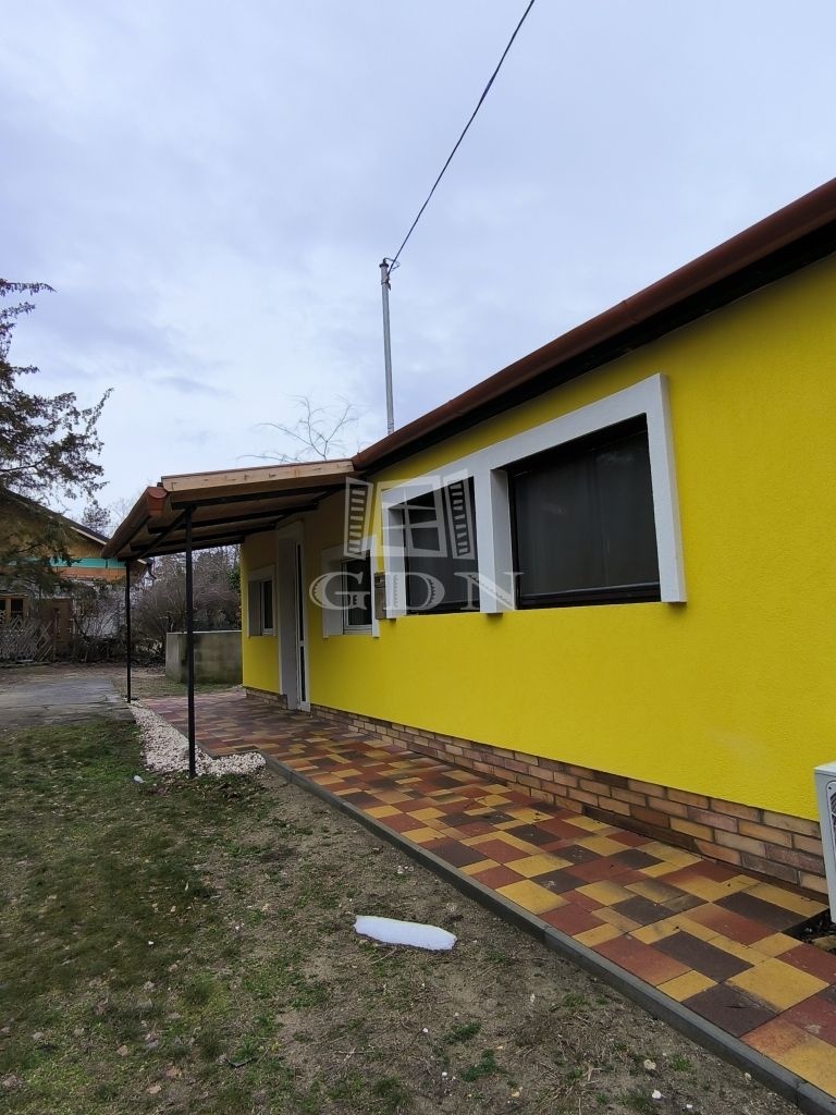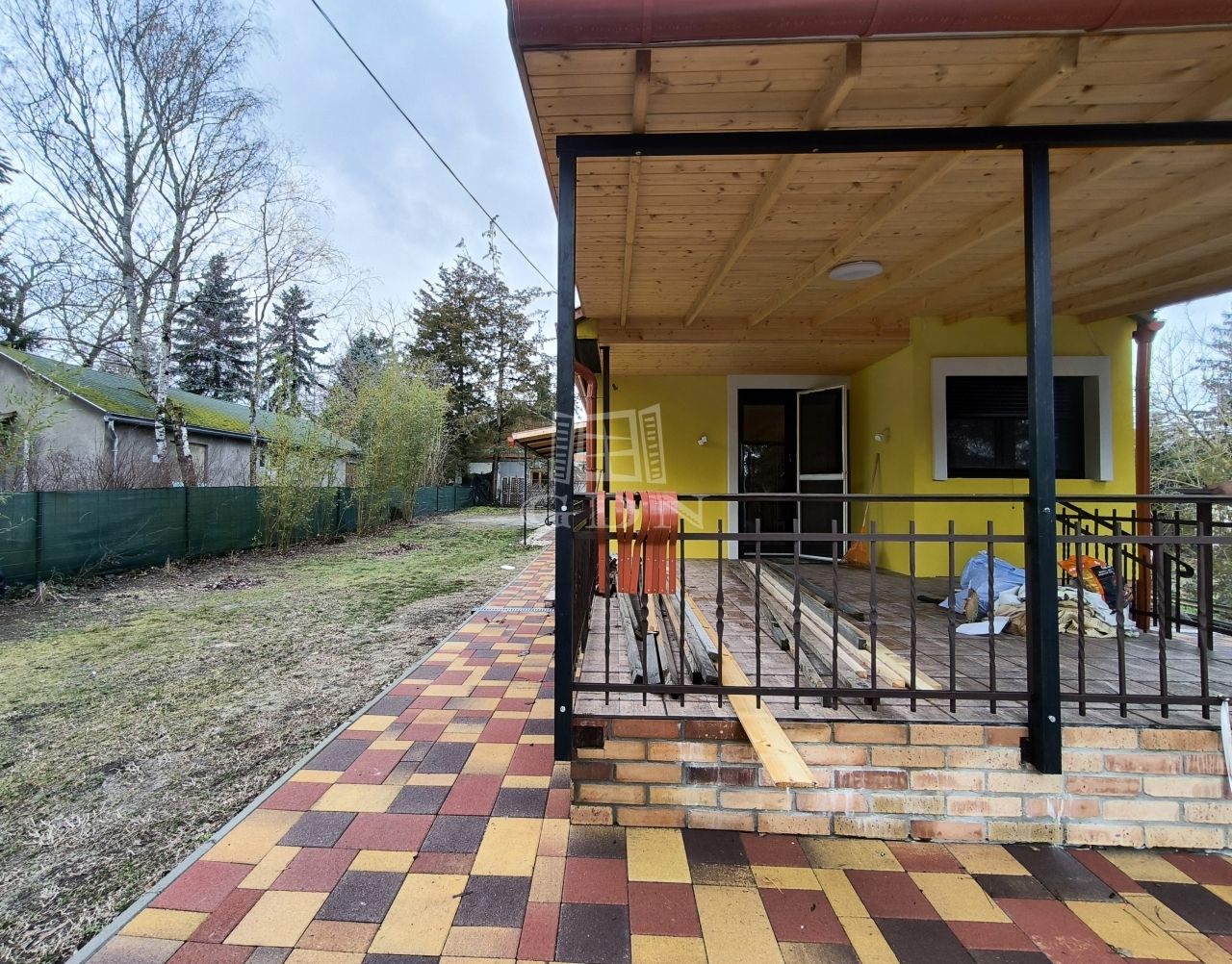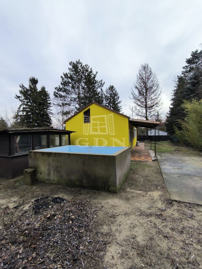 Pócsmegyer Surány II részén eladó felújított, fa szerkezetű, 56 nm-es (+8 nm-es tároló, + 16 nm-es fedett terasz, + épített medence) ház, 514 nm-es telken.