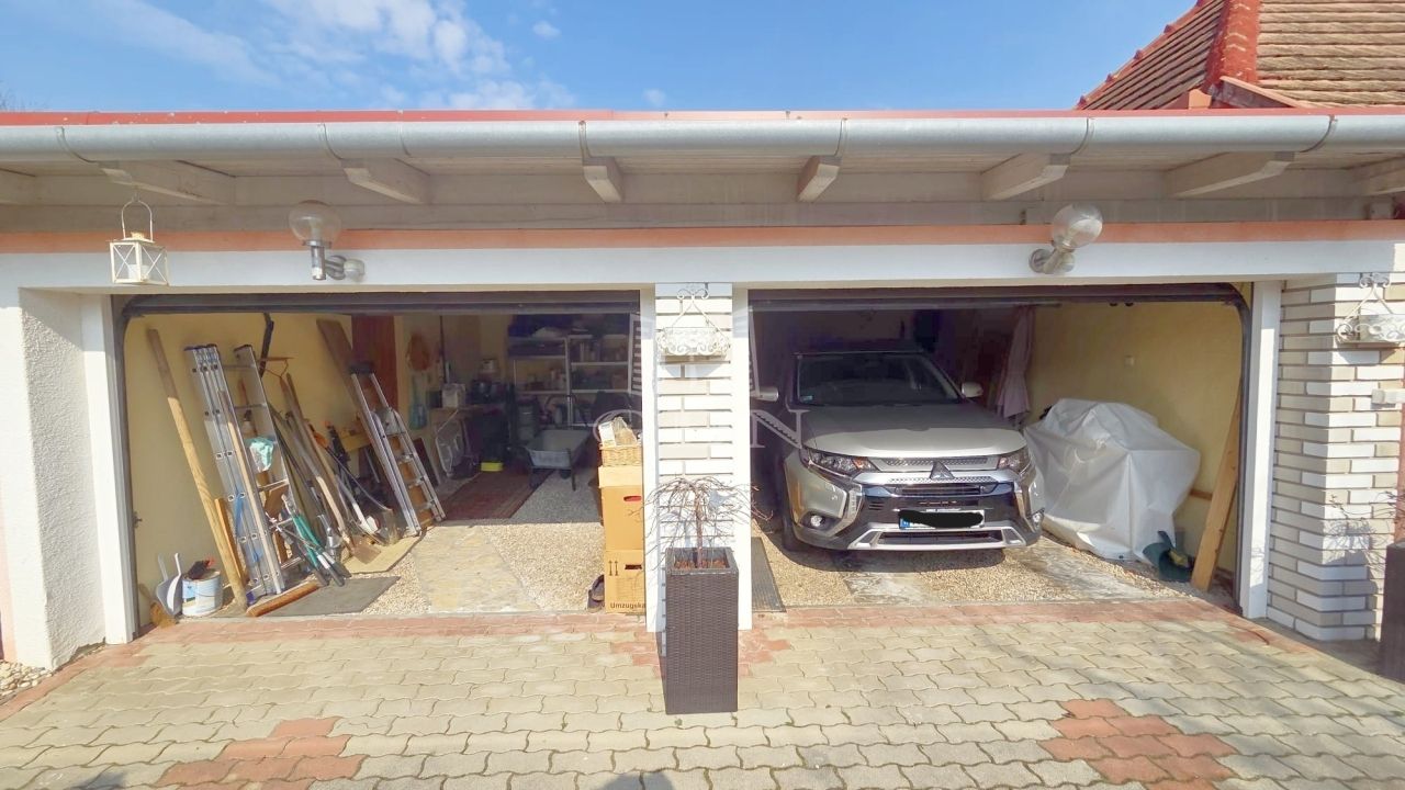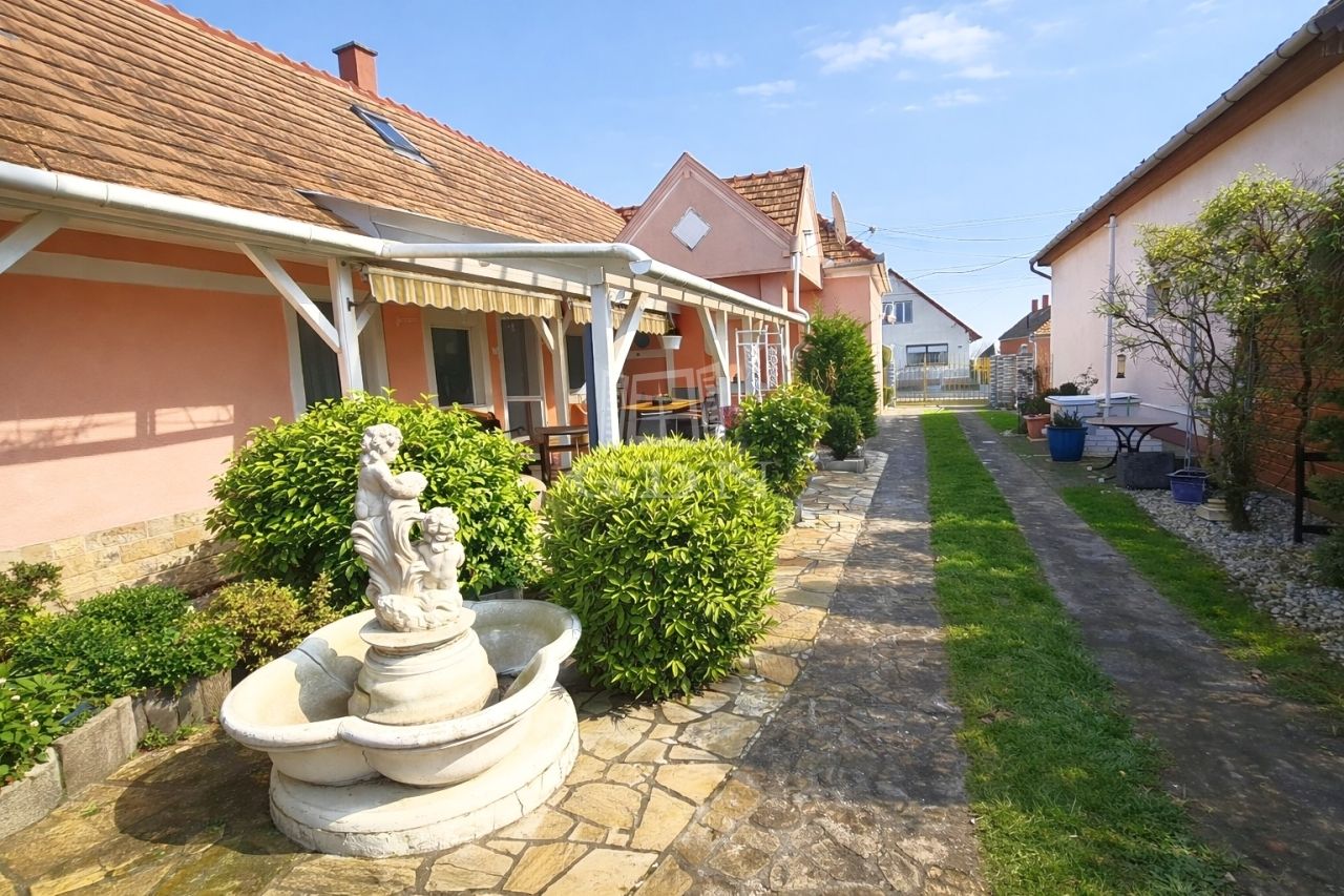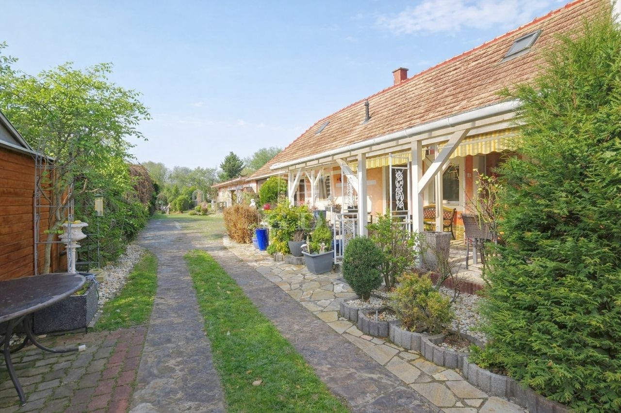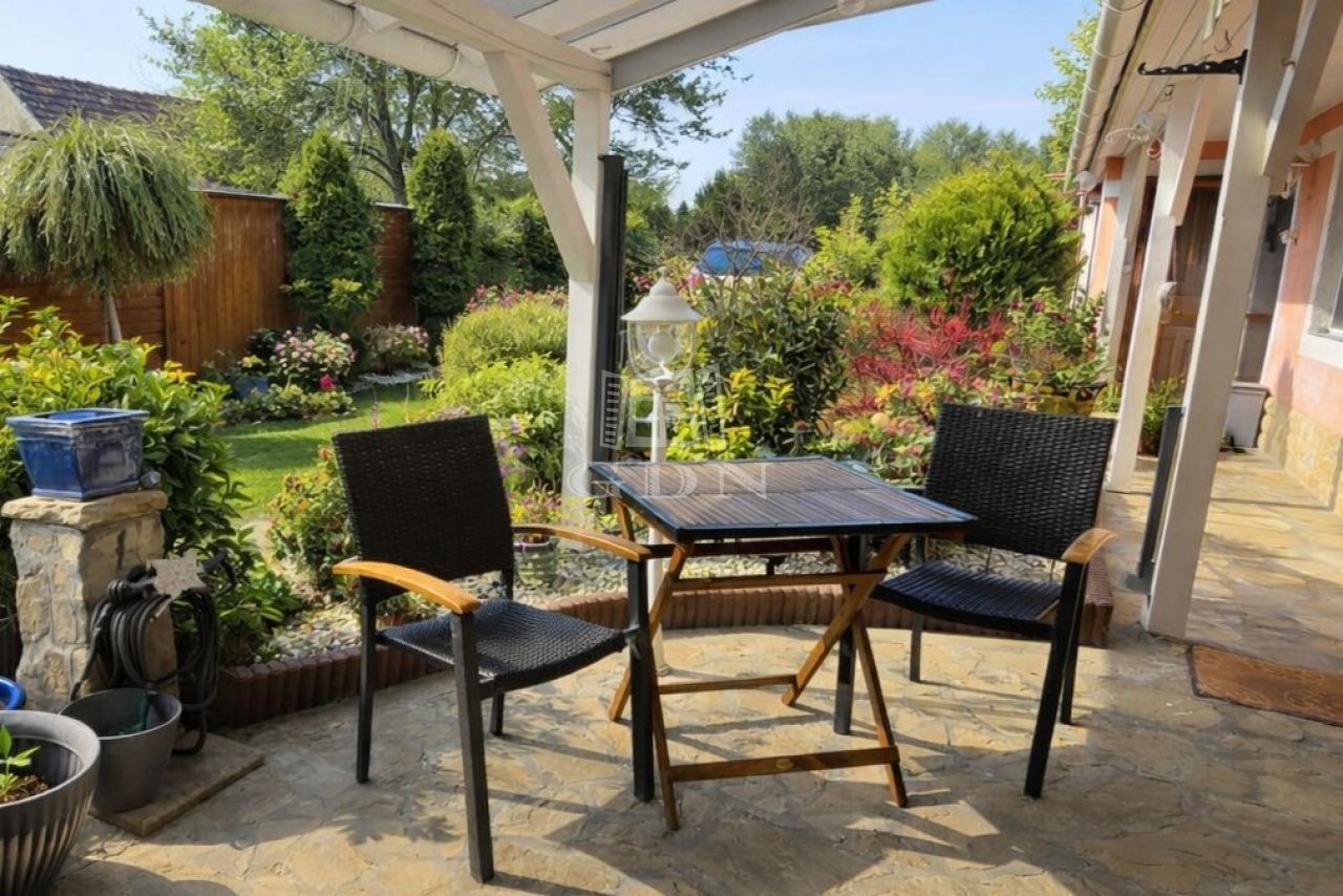 A gondosan kialakított telek gyümölcsfákkal, kúttal és ciszternával rendelkezik, így ideális választás kertkedvelők számára. A ház egyik különlegessége a fedett, déli fekvésű terasz, amely az utcáról nem belátható, így nyugodt pihenésre és kikapcsolódásra tökéletes.