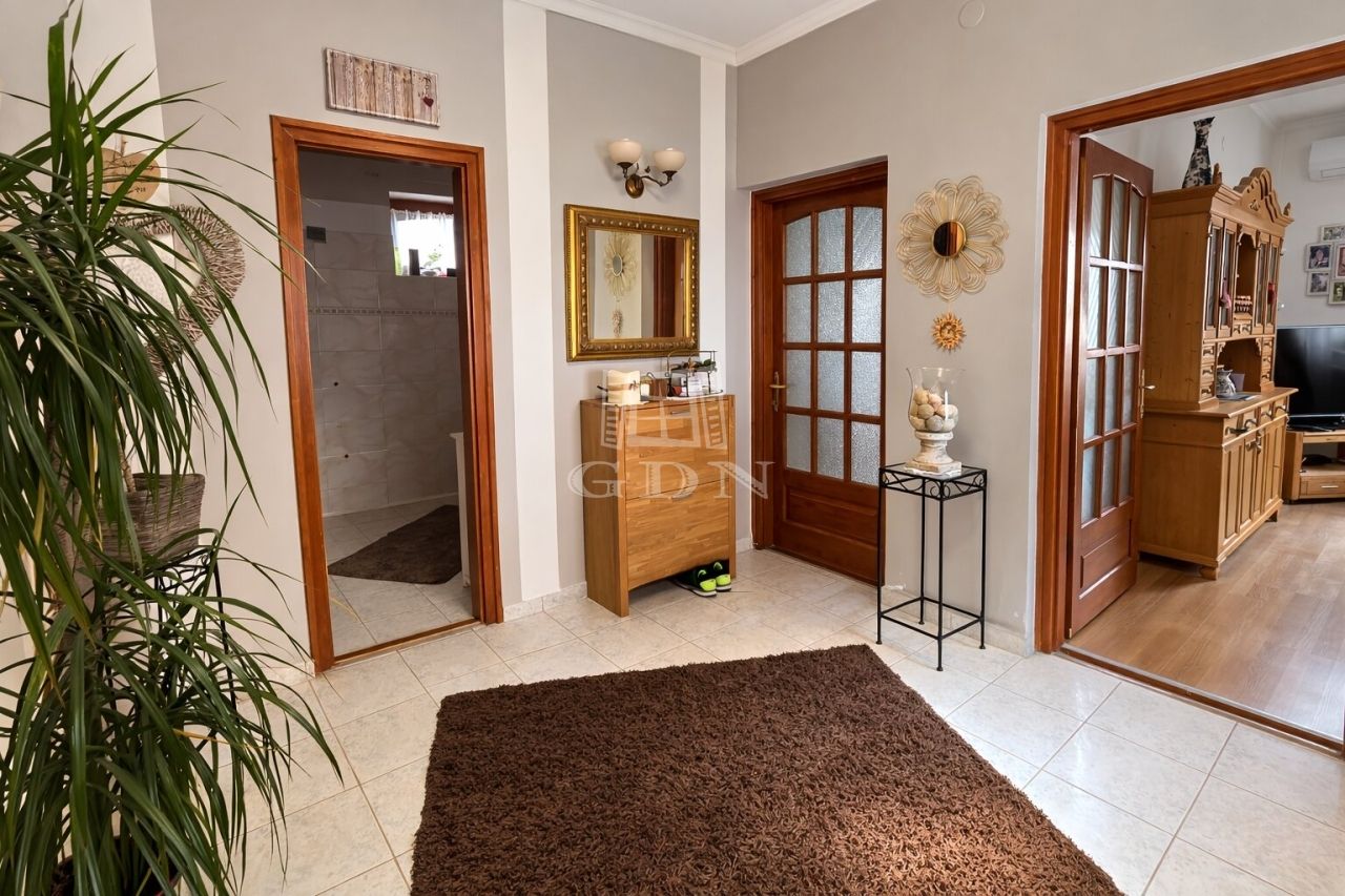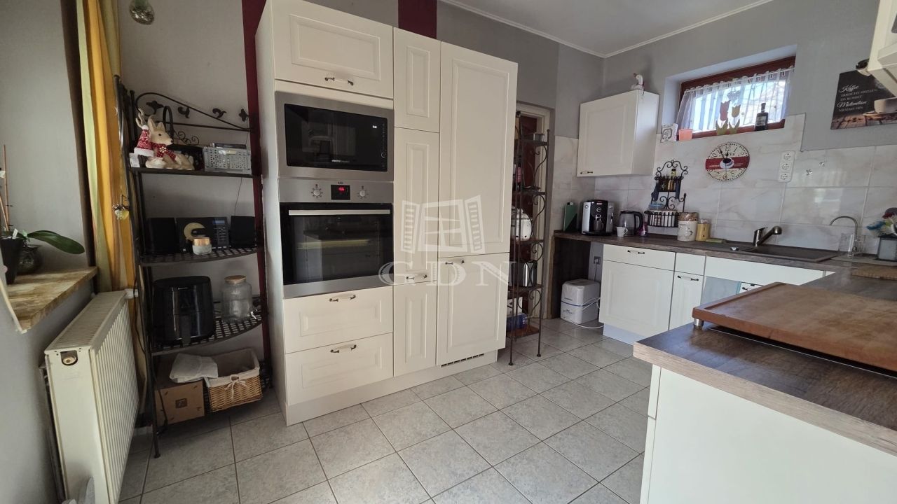 A ház praktikus elrendezésű. Az utcafront felé két nagy szoba található. Emellett egy étkező / nappali, egy teraszkapcsolatos, nyitott konyha, egy kamra, egy tágas fürdőszoba és egy előszoba tartozik az ingatlanhoz.