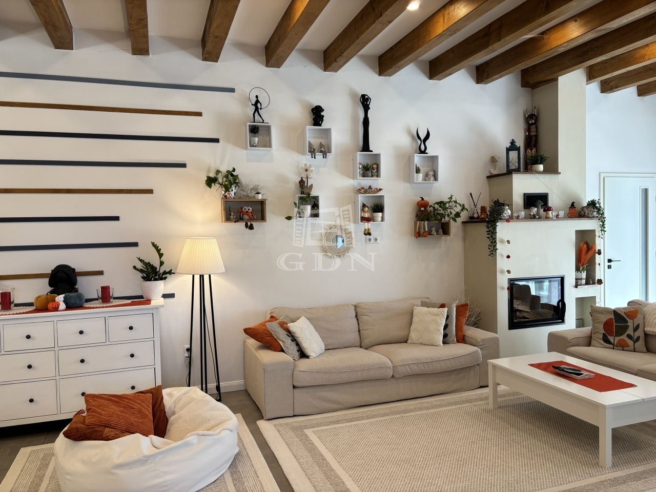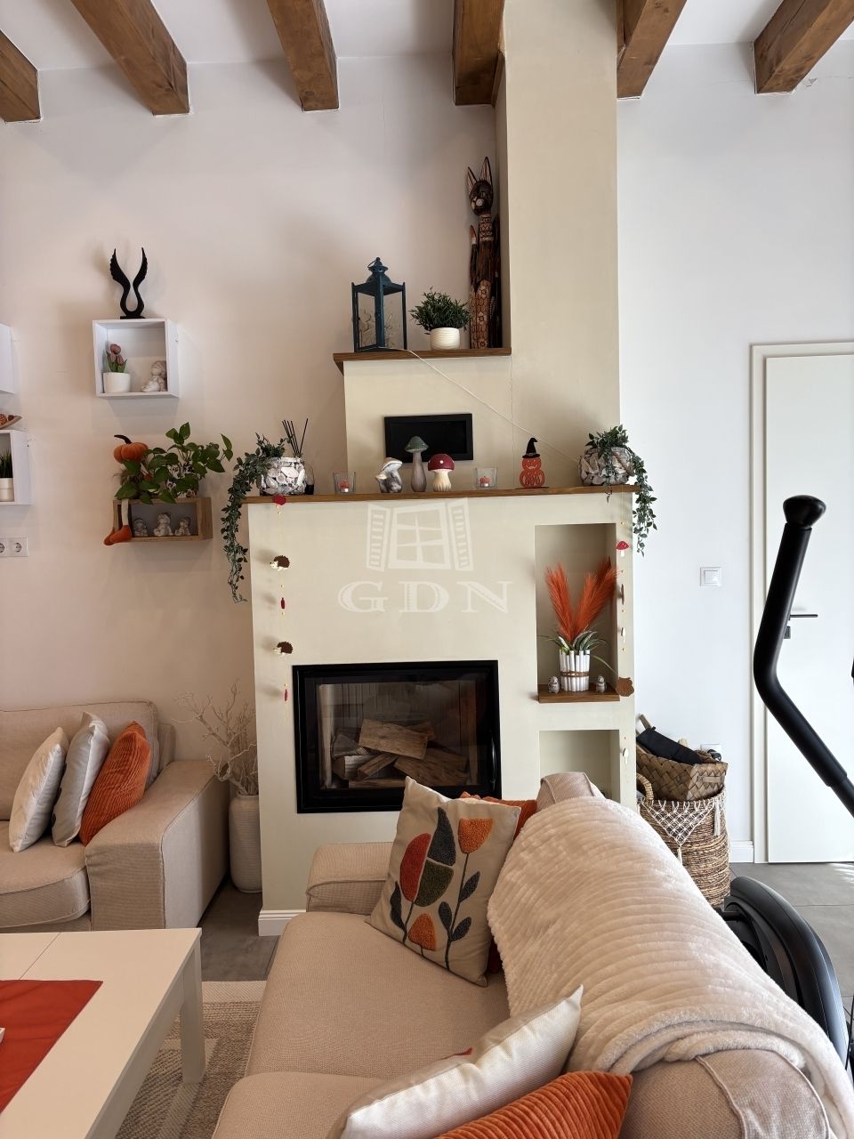 Nappali kandallóval és egy innen nyíló nagy terasz fogad