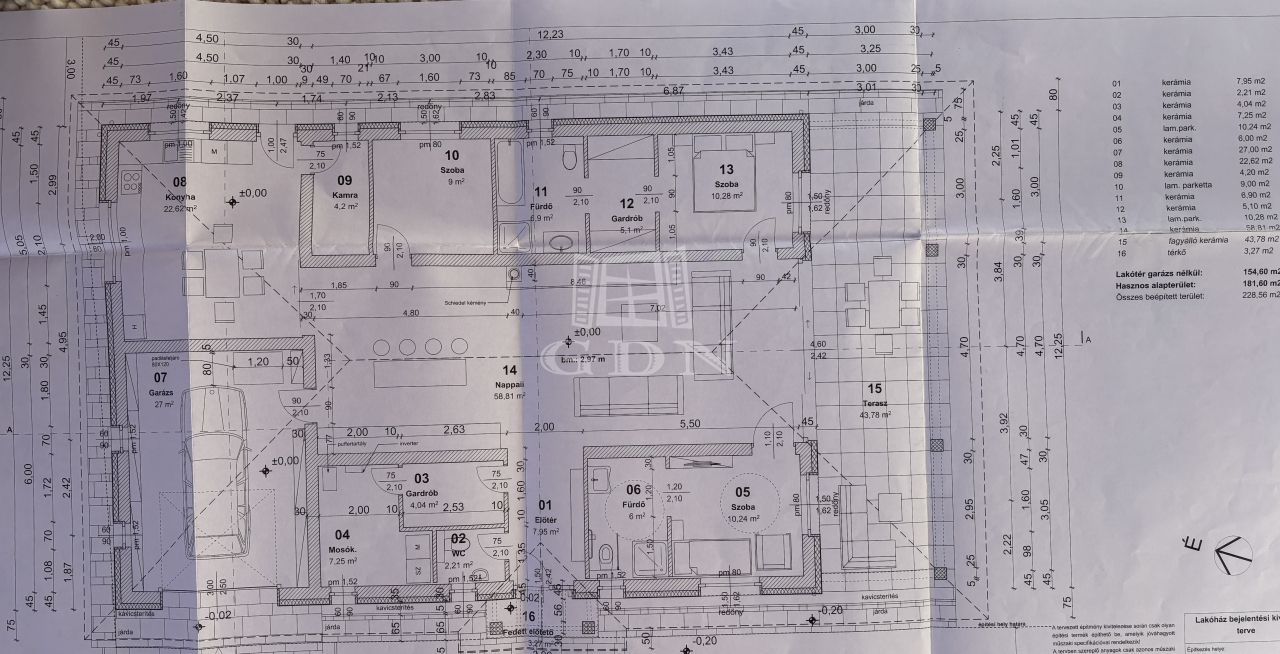 * Tető cserép fedés, falazat tégla, 20 cm-es szigeteléssel.