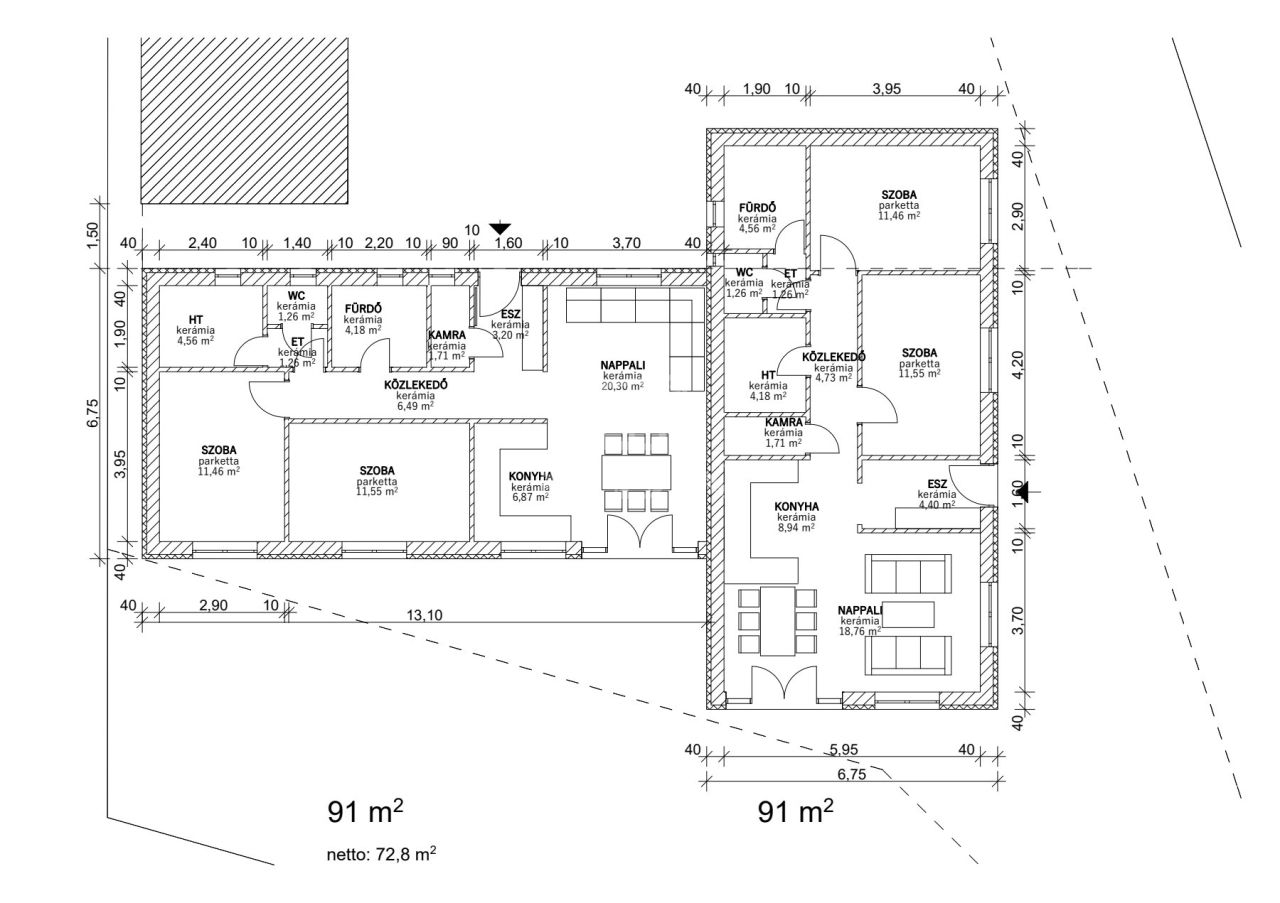 91 m2Alapterület 1 + 2 Szoba