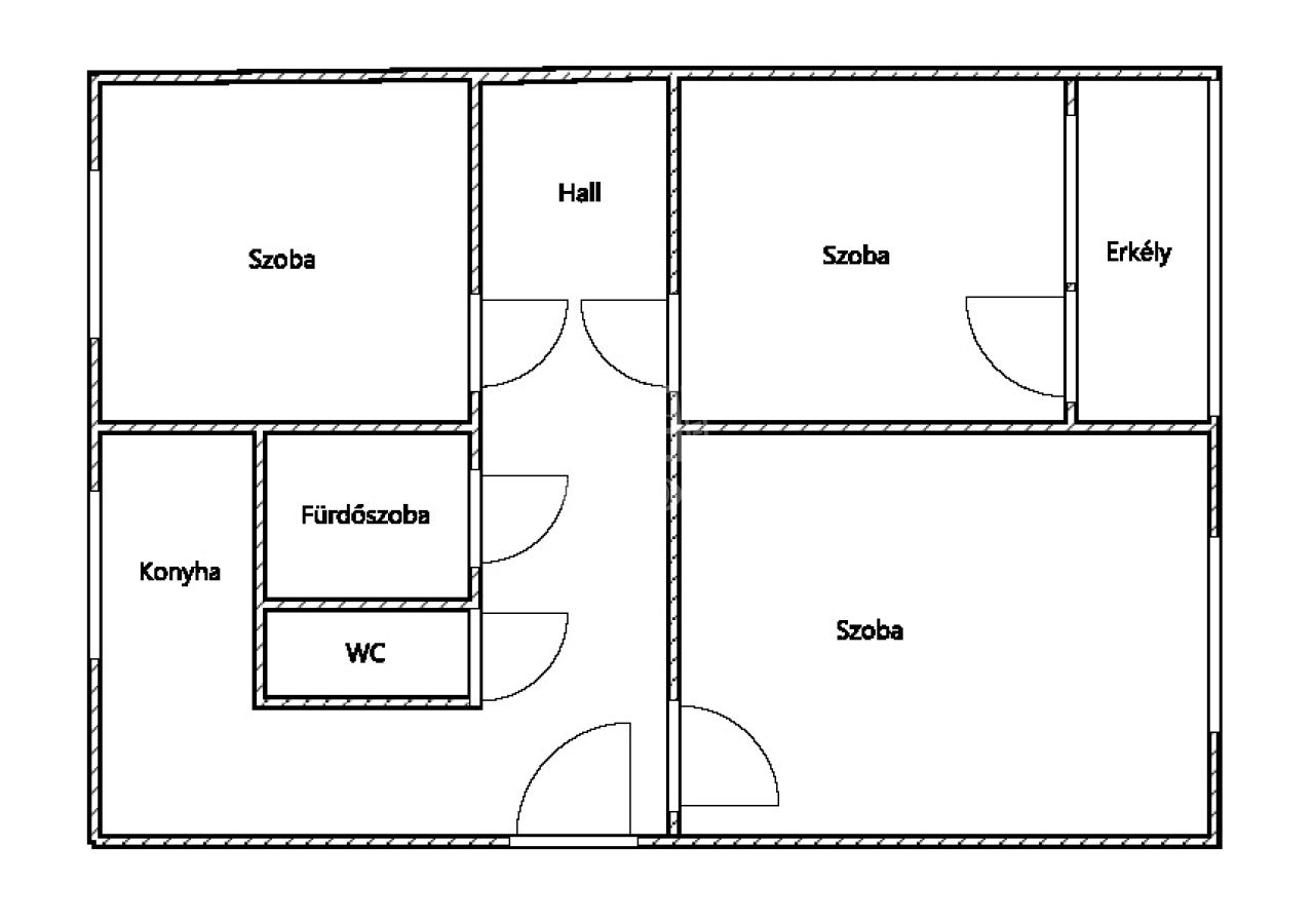 Elrendezés: 1+2 különnyíló szoba, konyha, fürdőszoba, külön WC, közlekedő, erkély
