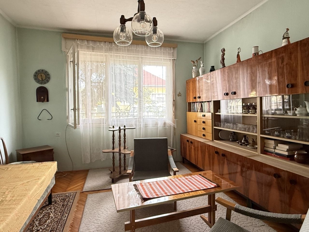 Elosztását tekintve: előszoba, 2 nagyszoba + 1 kisszoba, konyha, étkező, spájz, fürdőszoba, wc, (padlásfeljáró)