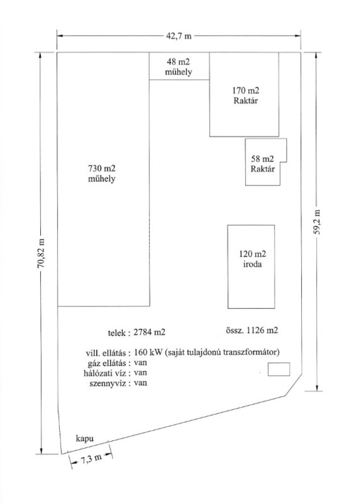 ‣ raktár: 170m2 + 58m2