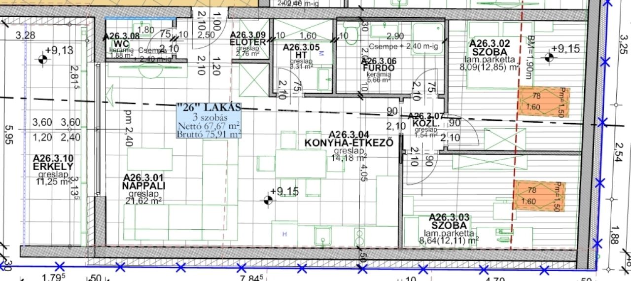A26 lakás: 67,67 m2|konyha + étkező - nappali, 2 hálószoba, előtér, fürdő + wc, vendég wc, 11,25 m2 erkély Eladási ár: 117.272.000 Ft