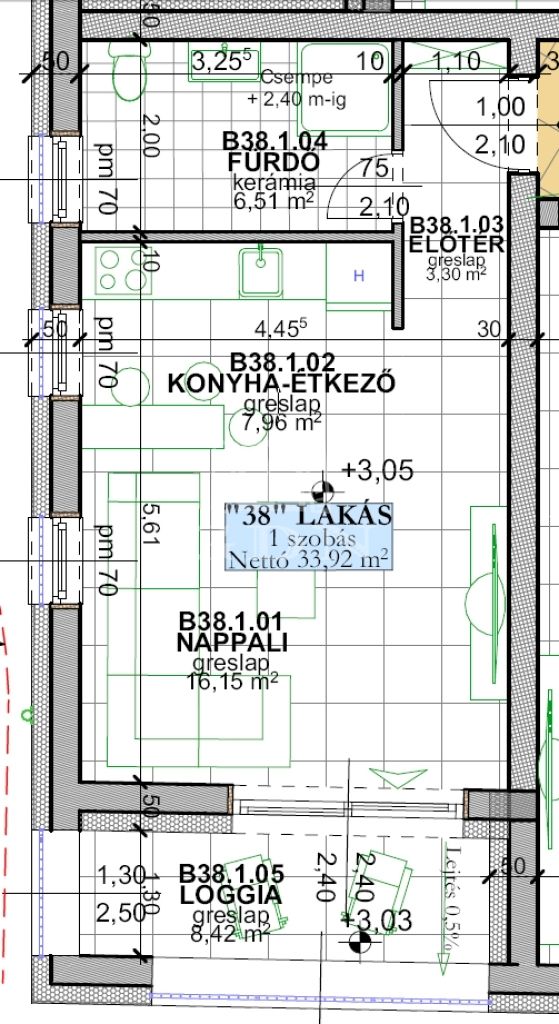 Elrendezés: konyha + étkező - nappali, előtér, fürdő/wc egy helyiségben, terasz 8,42nm