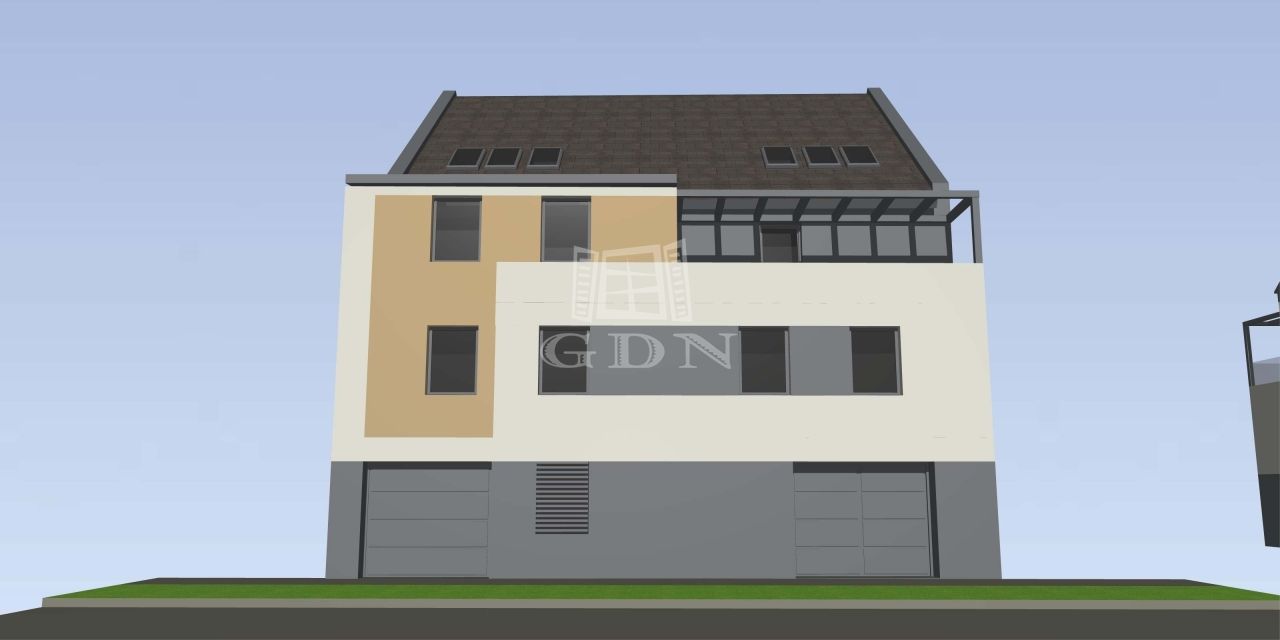 A kettő szintes, tetőtér-beépítéses épület modern megoldásai, nagy üvegfelületei és minőségi anyaghasználata világos, élhető tereket biztosítanak.
