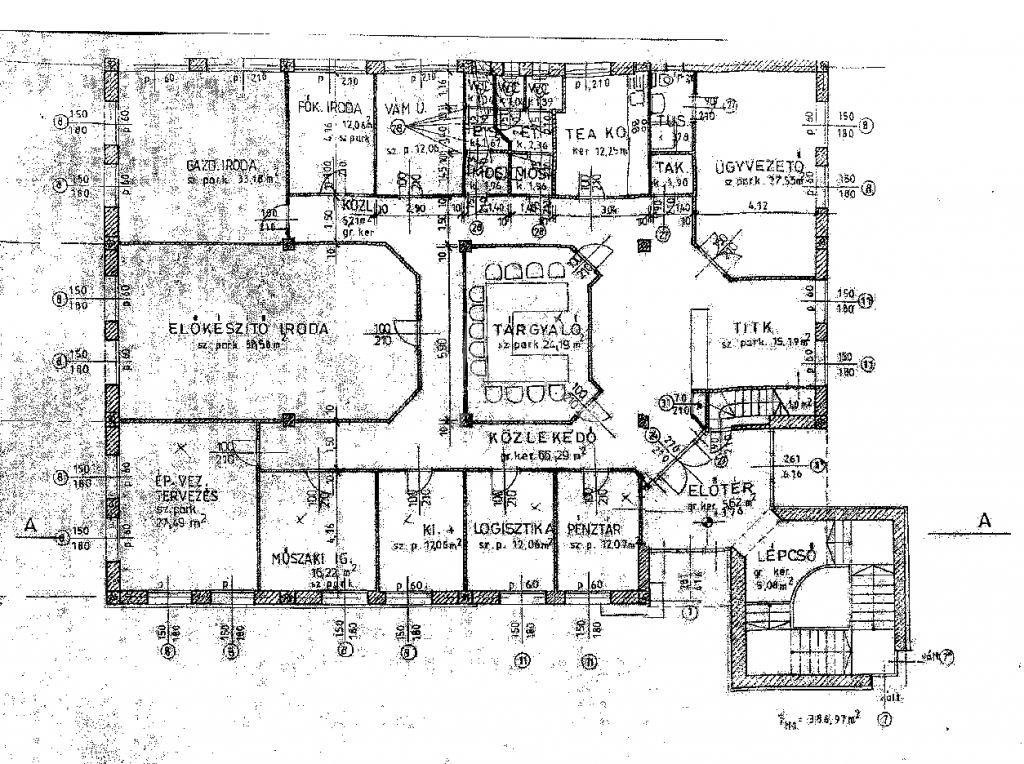 Elosztását tekintve 4 önálló irodahelyiségből és 1 ablaktalan raktárból/tárgyalóból áll.