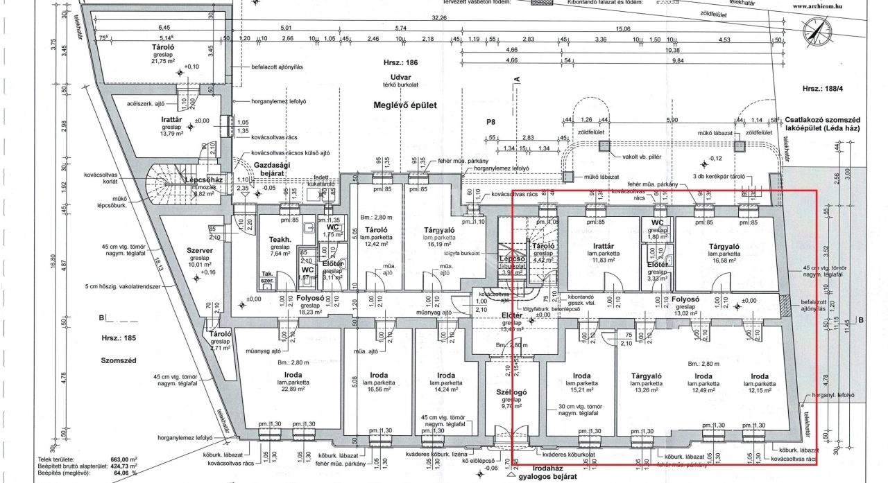 ‣ külön mosdó, WC, biztosított az irodákhoz