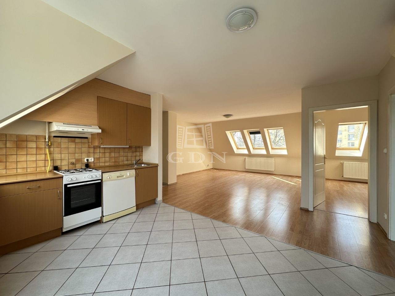 BL-000870. Móricz Zs. utcában, újszerű társasház 2. emeletén (tetőtér), amerikai konyhás, nappali + 3 félszoba elosztású, 97 m2 nagyságú, hasznos: 80 m2 (tetőtér), bútor nélküli, világos lakás, gázcirkó fűtéssel, 5 nm-es erkéllyel és saját 5 nm-es tárolóval kiadó.