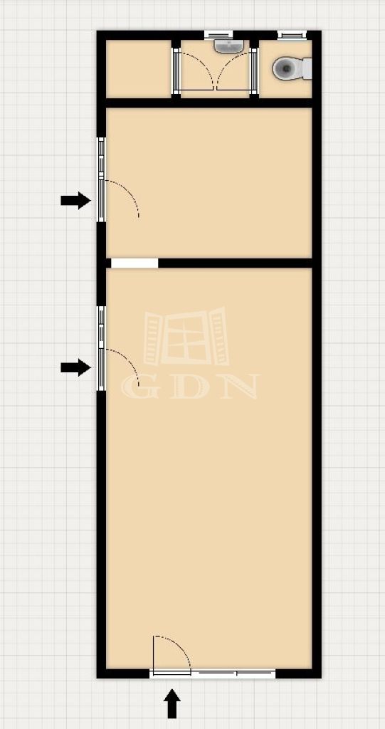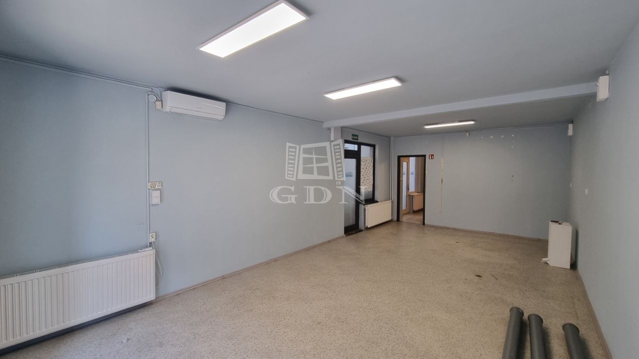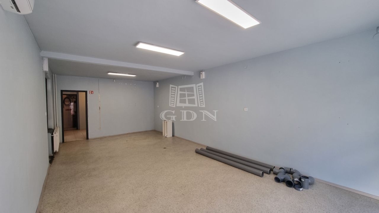 Az üzlethelyiség három részből áll: egy 35 m²-es utcafronti helyiségből, egy 14 m²-es raktárból, valamint egy hátsó vizesblokkból.