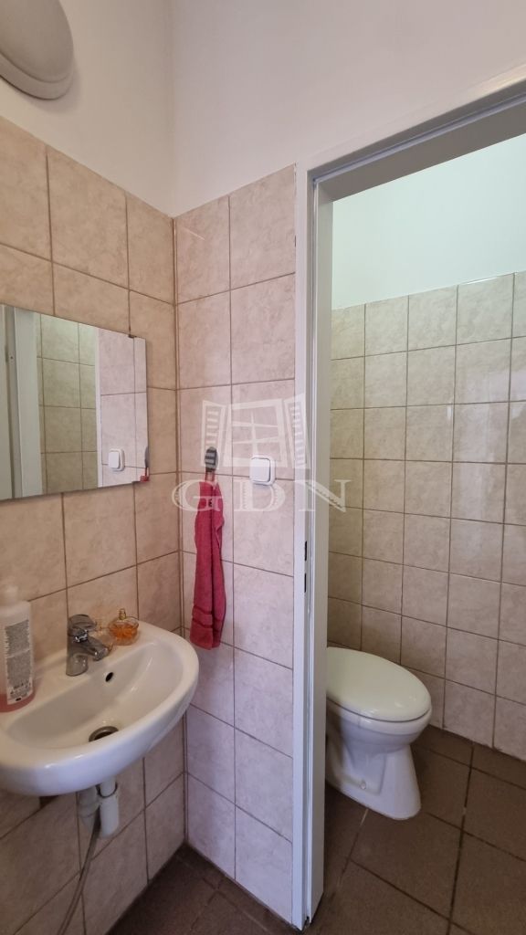 Elosztását tekintve két tágas és világos helyiségből (igény esetén összenyitható), két wc-kézmosóból, egy teakonyhából és egy nyitott helyiségből, illetve egy alagsori részből áll.
