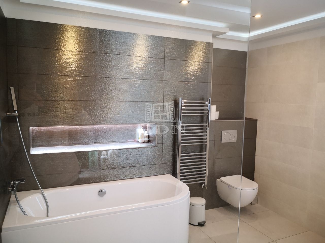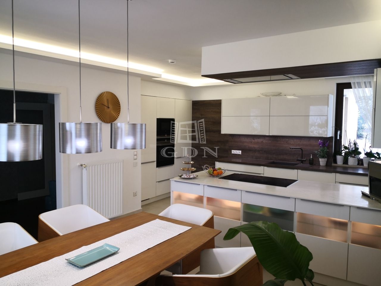 A modern, Siemens gépekkel felszerelt Nobilia konyha és a stílusos étkező mellett hat tágas szobával, elegáns gardróbbal, két exkluzív fürdőszobával, valamint négy WC-vel és tágas, világos terekkel rendelkezik. A prémium életérzés a ház minden apró részletében jelen van, amit az alábbi felszereltség is erősít.