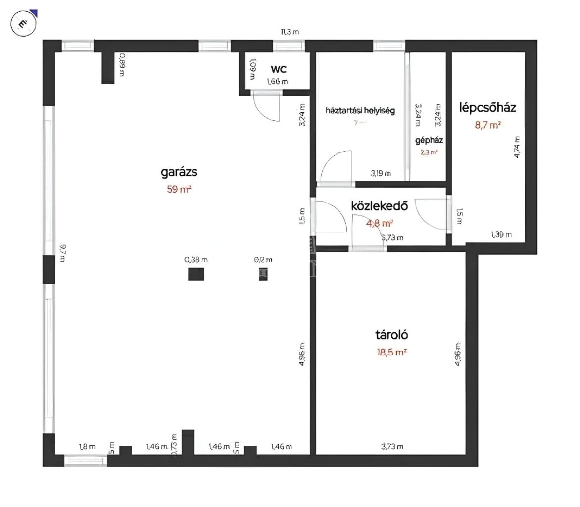 - Fűtött gépkocsi-beálló és kétállásos garázs.