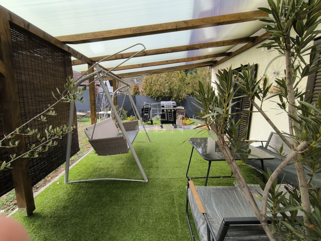- bővítésére a szintén tégla falazatú 15 nm-es jelenleg autóbeállóként használt rész nyújt lehetőséget, mely mögött külön bejárattal kerti szerszámoknak 5 nm-es tároló is kialakításra került