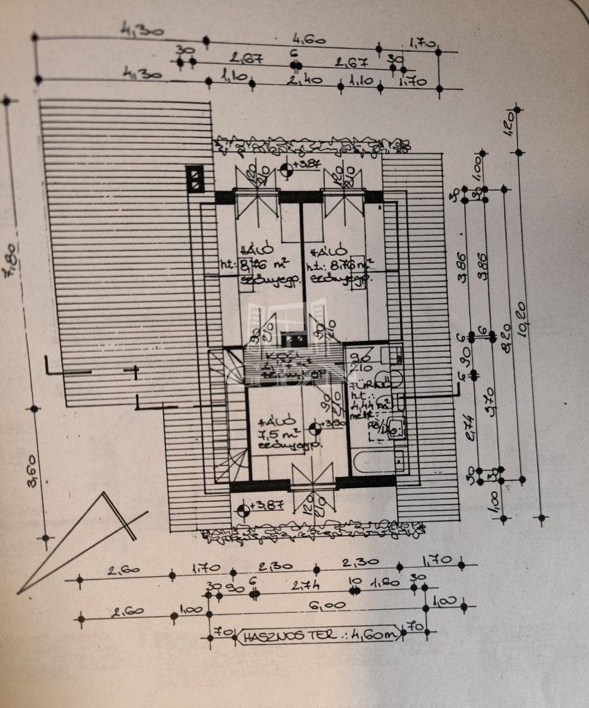 - az emeleten 3 háló (8,76 nm, 8,76 nm, 7,5 nm), és egy épített zuhanyzós fürdő is található