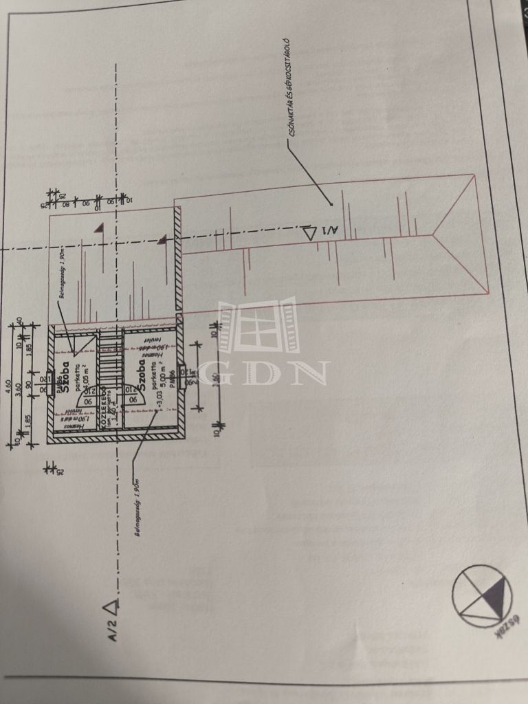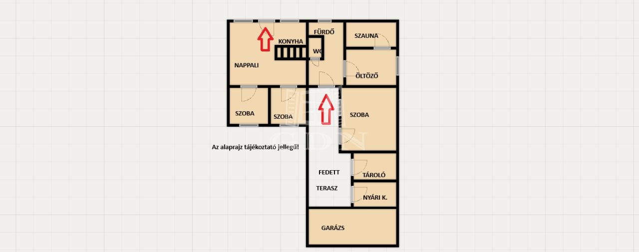 a tetőtérben pedig 2 félszoba lett kialakítva. A bejárattal szemben különálló wc, és fürdő, jobbra pedig egy finn szauna található öltözővel.
