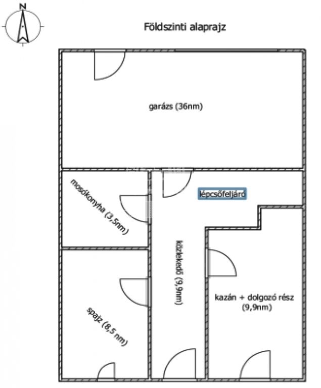 - kazánhelyiség (a helyiség méretei és világos ablakkal rendelkező adottsága miatt egy külön dolgozó szoba is itt kapott helyet),