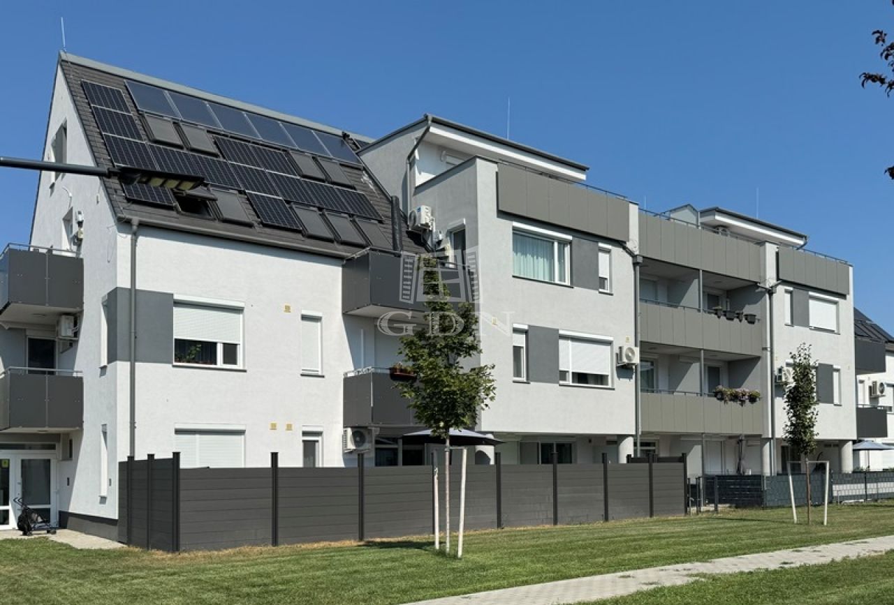 A társasház 2024-ben épült, téglából, magas-tető szerkezettel.