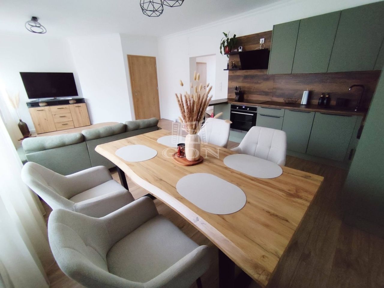 - Nappali-étkező-konyha