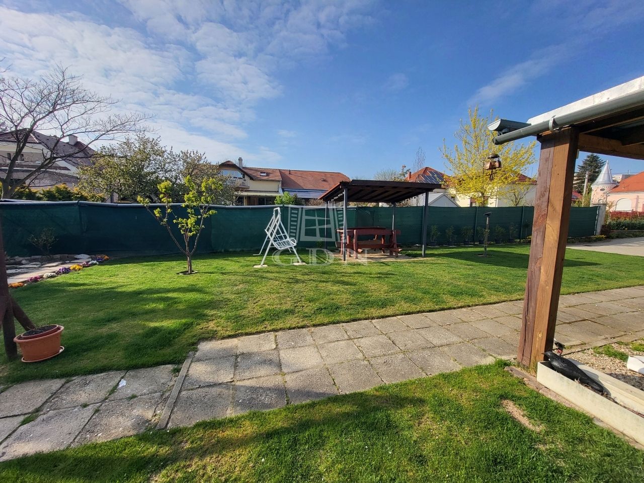 Az udvaron a ház folytatásában található a dupla garázs, kettő db tároló. Kertje szépen gondozott.