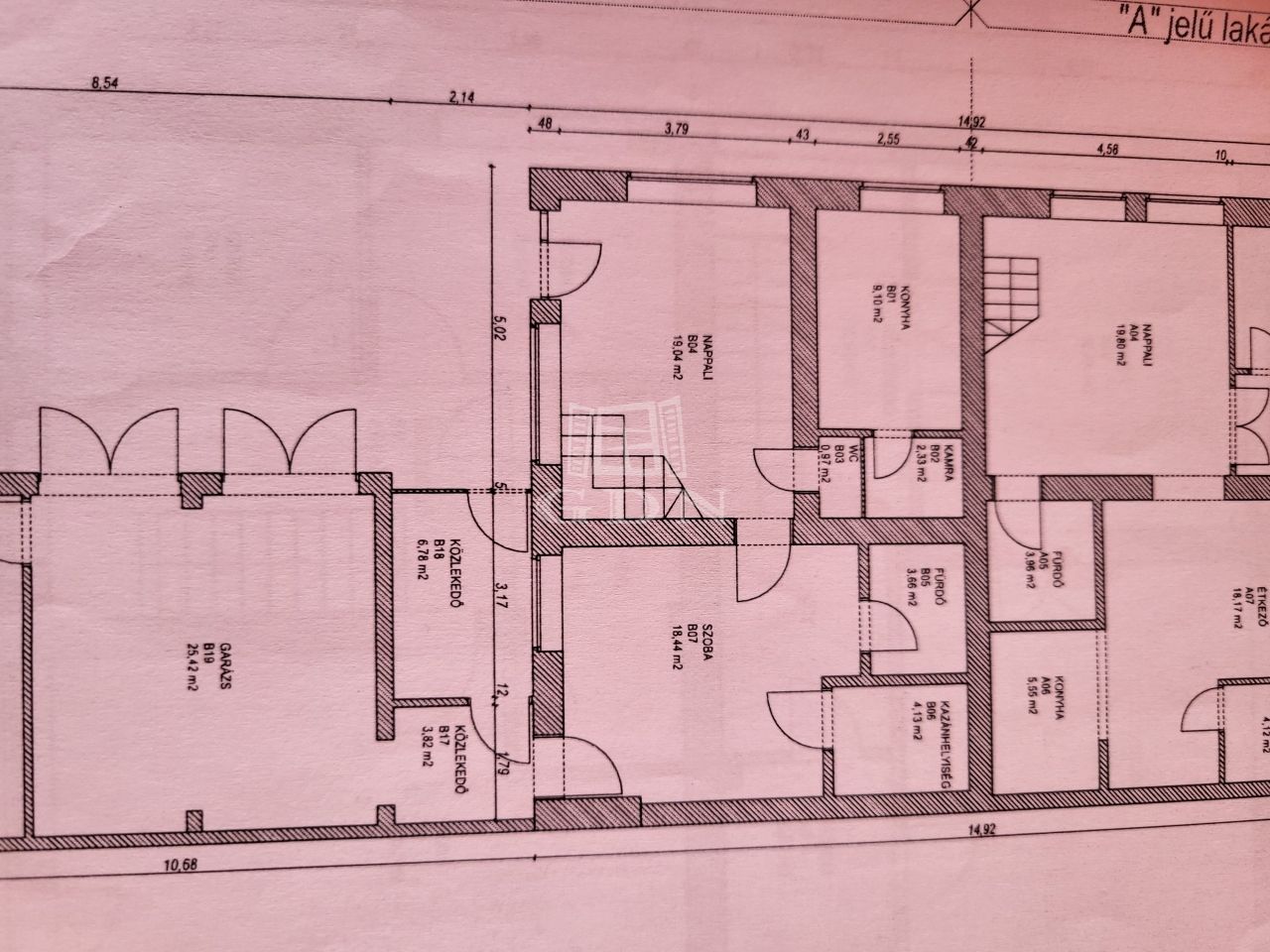 Földszint : szélfogó, közlekedő, nappali, konyha, kamra, szoba, fürdő, wc, kazánház