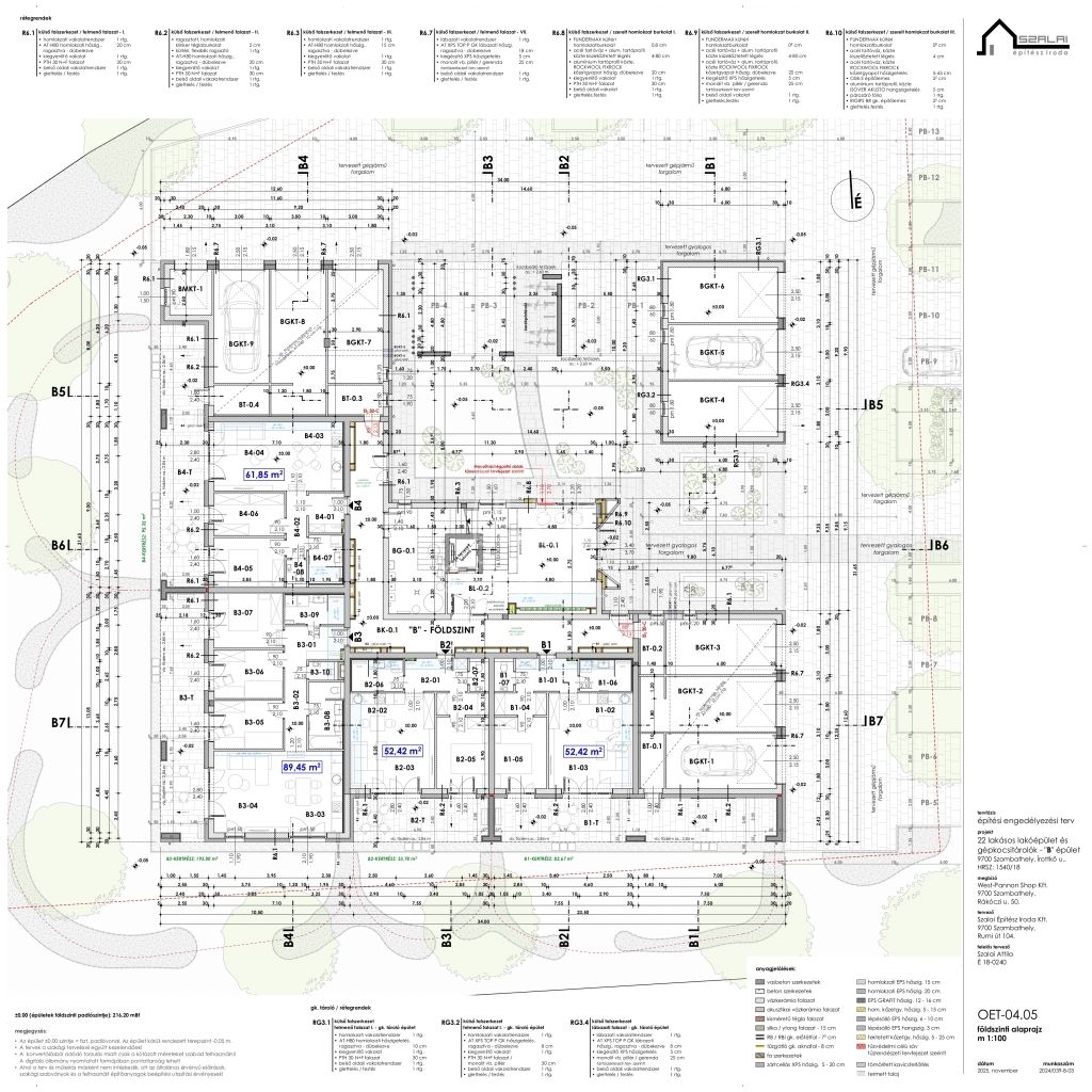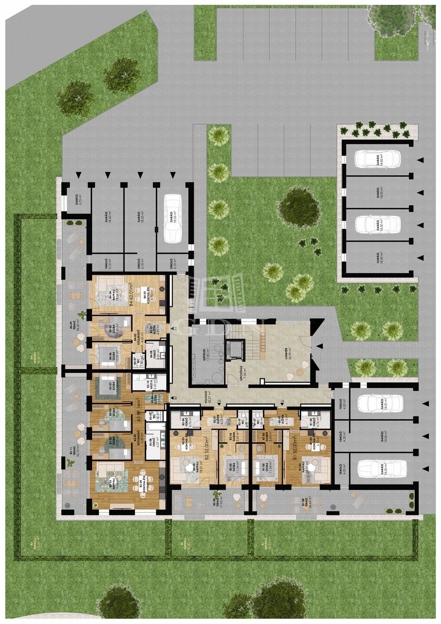Modern megjelenésű, értékálló, kényelmes és élhető lakóparkban valamint az épületekhez kapcsolódó egyedi lakókörnyezetben szeretne élni? Hamarosan megvalósulhat az álma. A Gyöngyös-patak partján belváros közeli prémium lakások épülnek 20 000 m2-es területen, több ütemben. A tervezés során a funkció, a környezettudatosság és a kényelem voltak a legfontosabb tervezési szempontok. Így különösen az épületek szellős elhelyezése, a lakások kedvező tájolása, az épületek körül a maximális zöldterület és a megfelelő garázs szám biztosítása, a színvonalas közösségi funkciók kialakítása. A lakások értékállóságát és kényelmét az átgondolt tervezés, a minőségi anyagok használata, a nagyméretű, intim teraszok, a lift, a megújuló energia, egyedi és közös tárolók, fedett beállók, garázsok biztosítják. Az alkalmazott szerkezetek megfelelnek a ma érvényes “közel nulla energiaigényű épületek” követelményeinek. Az épületek előtti sétányok díszkivilágítást kapnak mozgás- és alkonykapcsolás vezérlésével. A sétányokról különböző típusú gépkocsi beállóhelyek – felszíni fedett, és normál parkolók ill. garázsok - közelíthetők meg. Egyes parkolók között beruházói döntés szerinti helyen és műszaki kialakítással, elektromos töltőpont csatlakozási lehetőség biztosítható. A közös területek alkalmasak játékra, pihenésre, a földszinti lakások előtti kijelölt zöldterület saját használata mellett. A ház kaputelefon rendszerrel lesz felszerelve. A lépcsőházban és egyéb közös terekben légterenként időkapcsolós világítás lesz kiépítve. A mai korszerű követelményeknek, az épületek hő és hangszigetelése a vonatkozó szabályoknak maximálisan megfelel. A külső hőszigetelés vastagsága 16-20 cm. Az ablakok 3 rétegű üvegezéssel kiváló hőszigetelésű nyílászárók. A lakások padlófűtéssel rendelkeznek, mely a szabadabb belsőépítészeti kialakításoknak ad lehetőséget. A tervek szerint a központi gépészet távfelügyeleti rendszerrel ellátott, távfűtés, így a karbantartás és üzemeltetés során ez gyors beavatkozást és üzembiztonságot eredményez. A fogyasztás egyedi mérőkkel mért, az elszámolást a közös képviselő végzi. A megújuló energia tervek szerint a megfelelő energetikai szabályok alapján kerül telepítésre pl. napelemrendszer. (Kiviteli terv során változhat: kondenzációs gázkazán és/vagy hőszivattyú). Belsőépítész által tervezett lakások, nagy teraszokkal kapcsolódnak a természethez. Befektetőknek, nagy családoknak alkalmas lakások kerülnek kialakításra. A kisebb lakások 52 m2, 62 m2, a nagyobb lakások 67 m2, 76 m2 és 89 m2 nagyságúak lesznek. 12-33 m2 fedett intim teraszok kerülnek kialakításra. Aktuális, bevezető ajánlatban az 1db felszíni parkolót, vízlágyító rendszert, klíma előkészítést ajándékba adja a beruházó. A lakásokhoz tárolók, garázsok vásárolhatók. Kimerítőbb tájékoztatást személyesen. A hírdetésben szereplő lakás földszint 4.