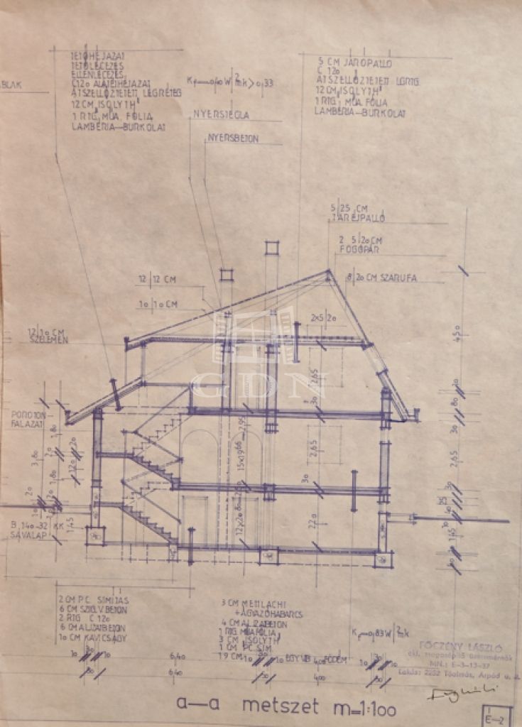 A ház POROTHERM tégla falazatú, kétrétegű hőszigetelt üveggel ellátott fa nyílászárókkal, víz-, villany- és csatornabekötéssel (3×16 amper rendelkezésre áll). A gáz az utcában van. A födém vasbeton, az épület tetejét cserép fedi. Szigetelés nincs rajta.