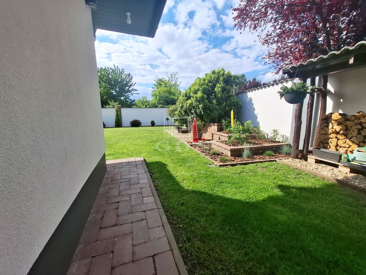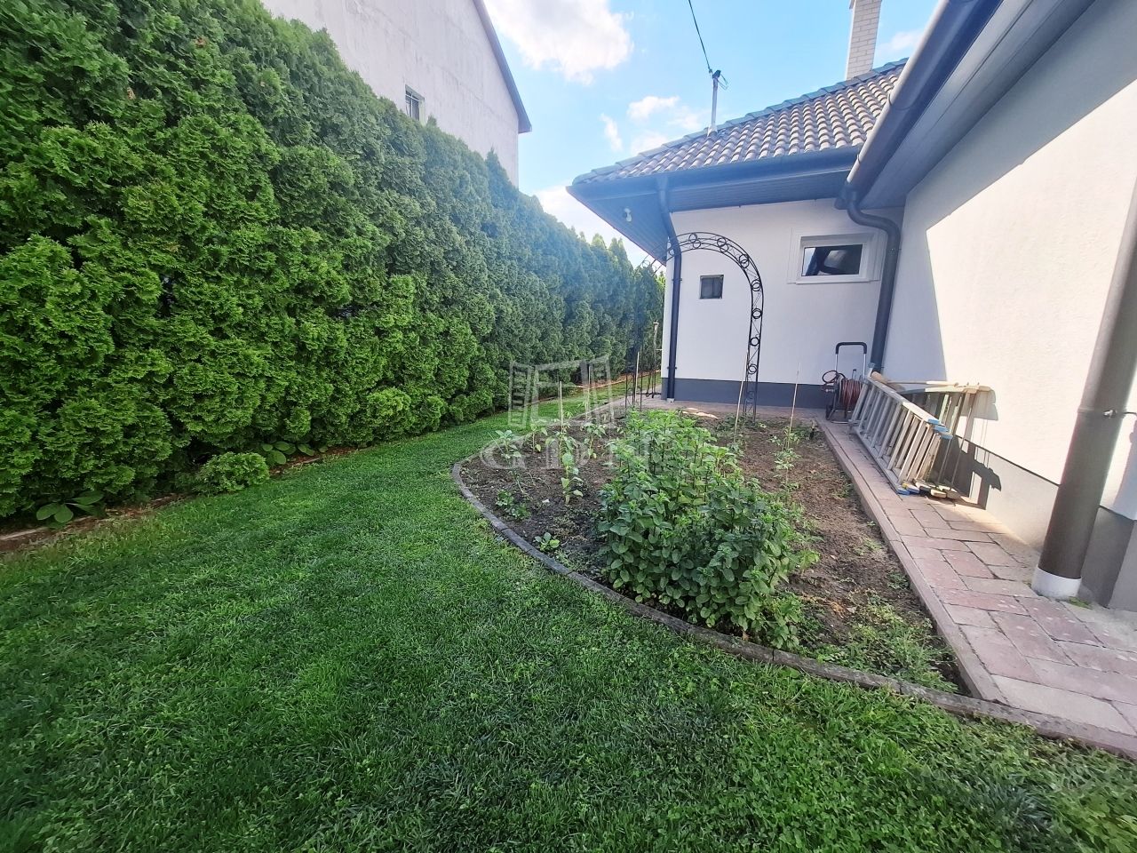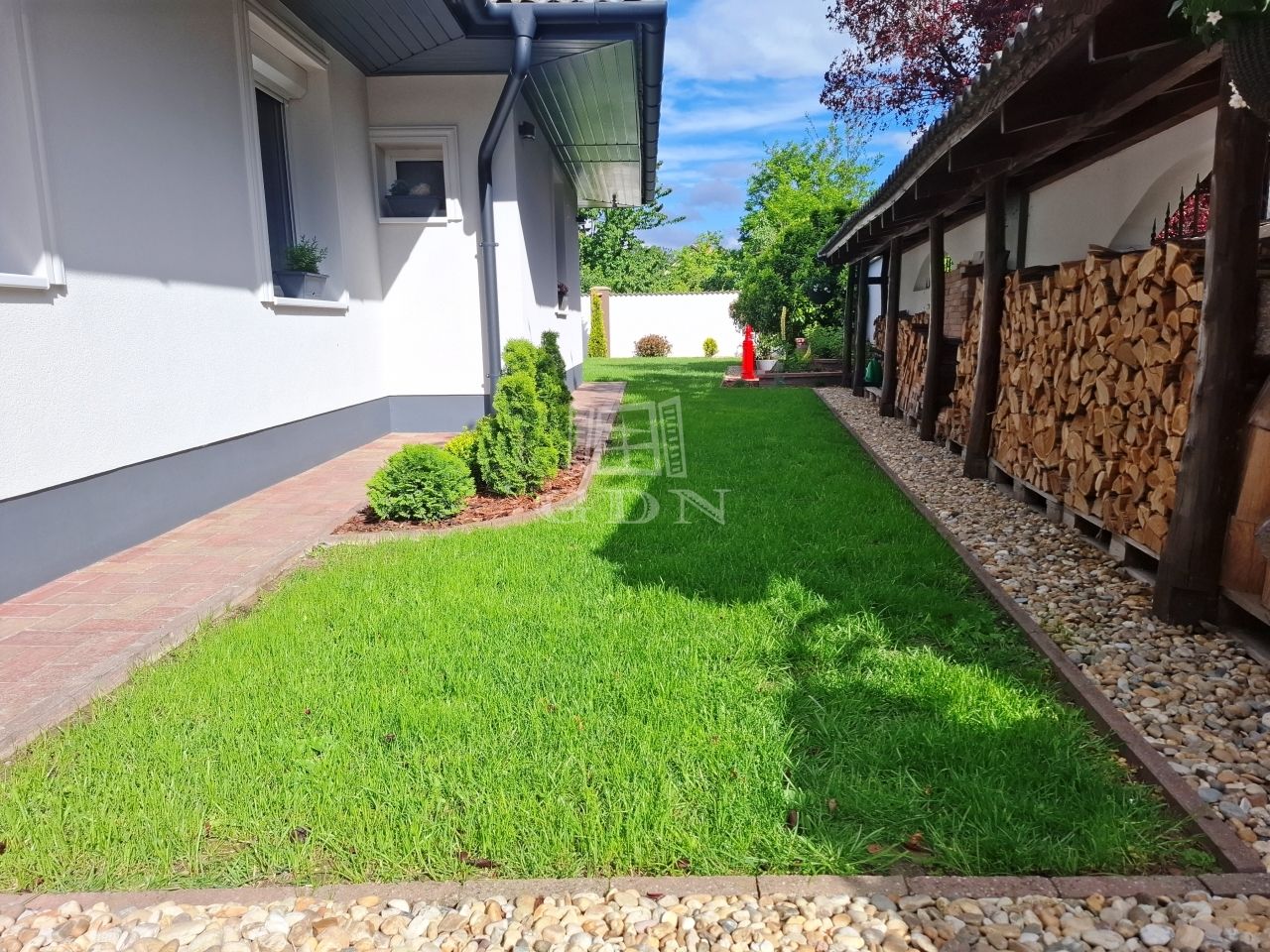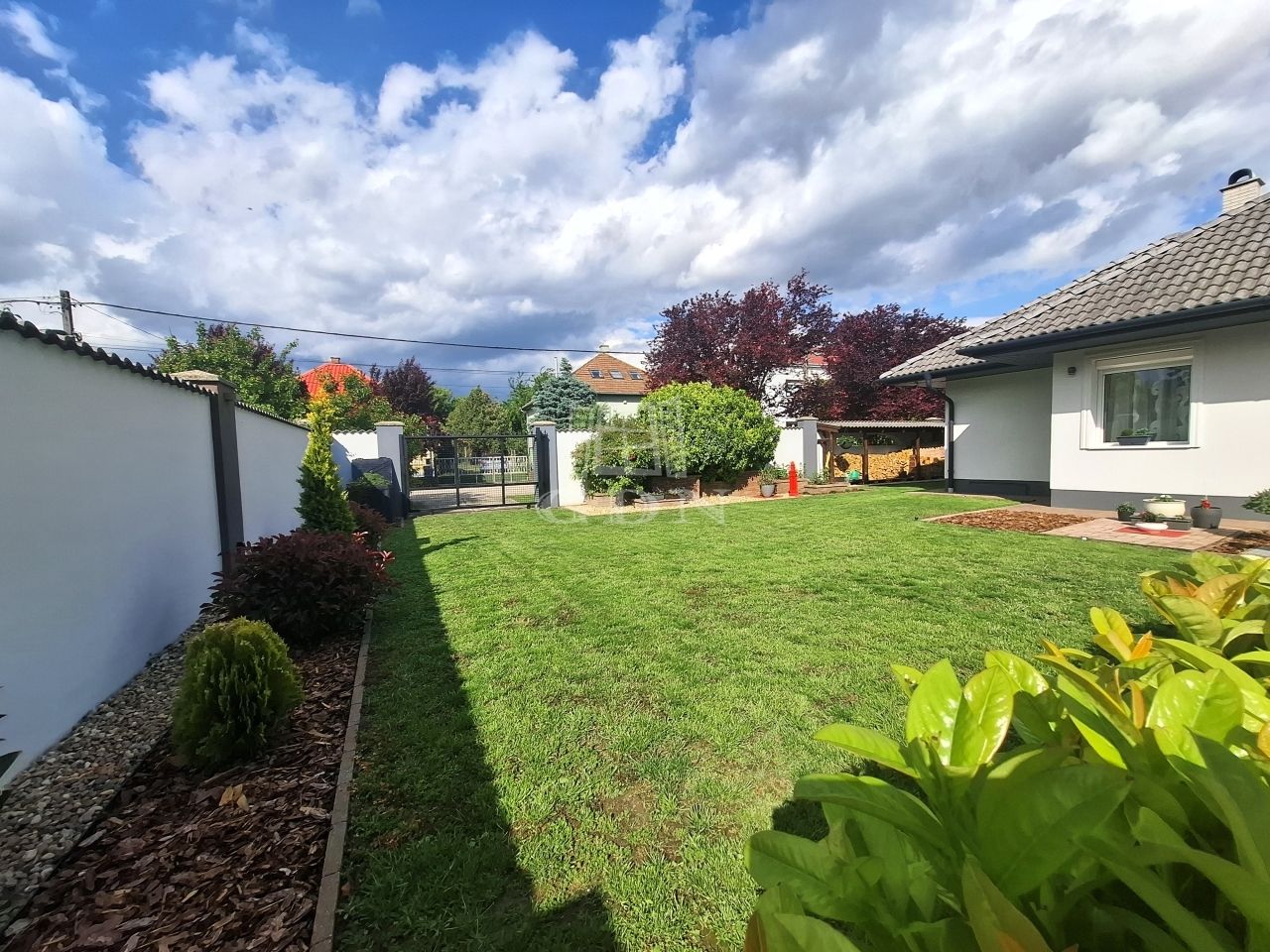 -parkosított gondozott kert öntöző rendszerrel,örökzöldekkel,