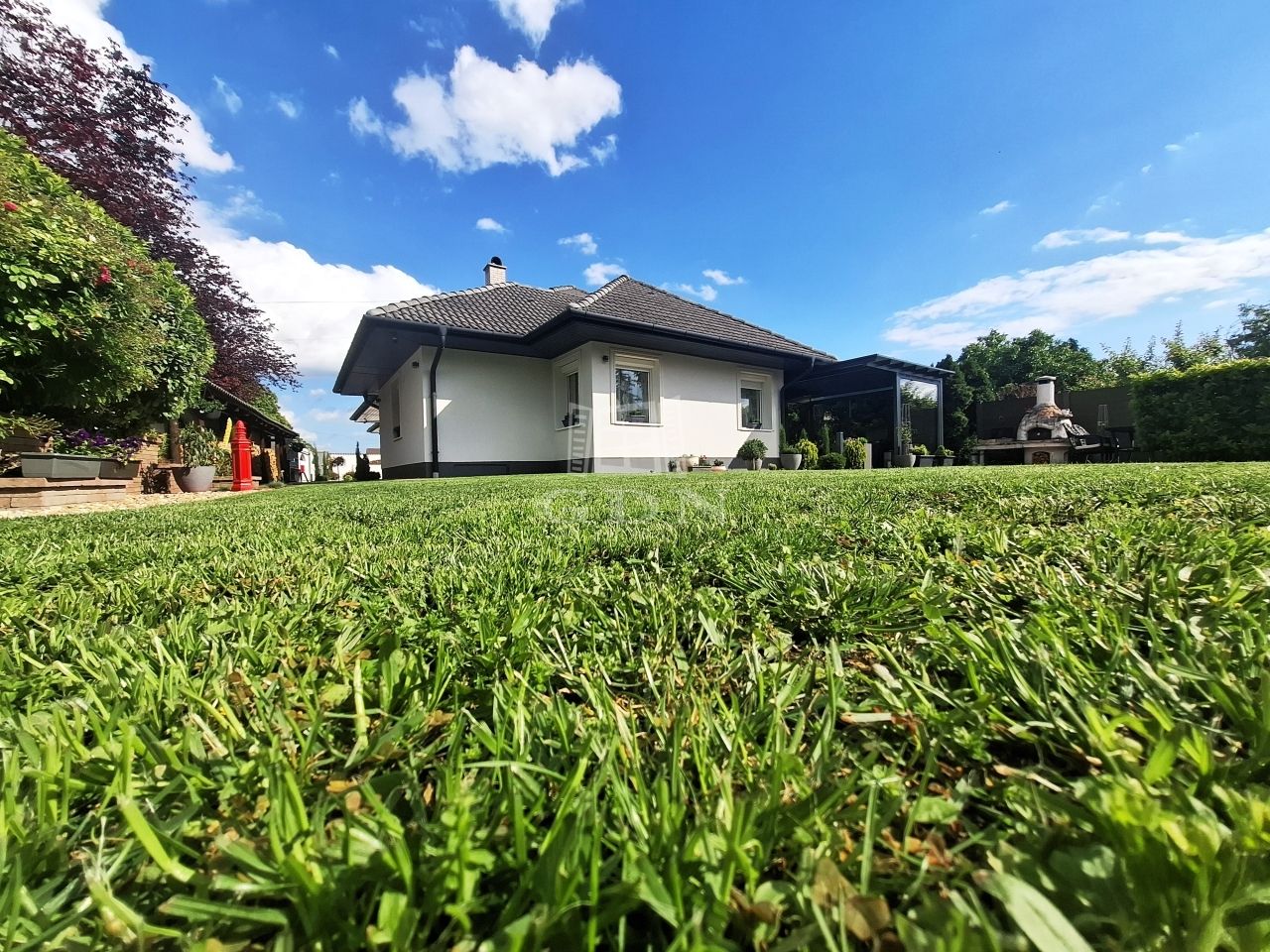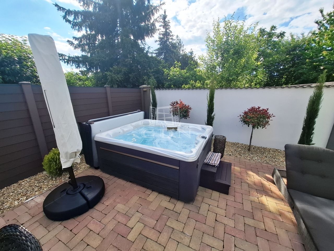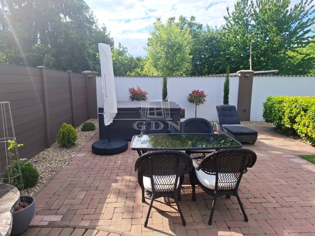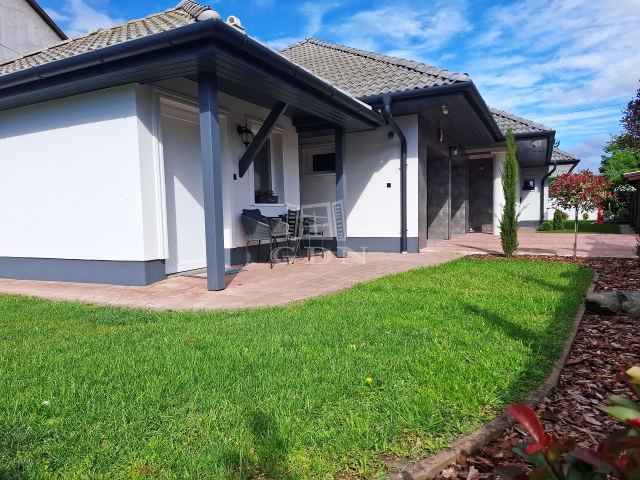 -parkosított gondozott kert öntöző rendszerrel,örökzöldekkel,