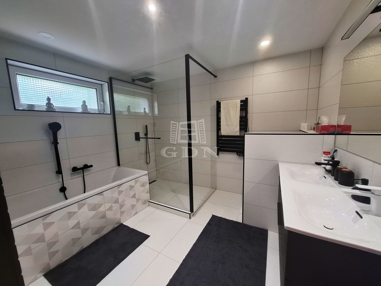 -fűtött dupla garázs automatizált garázskapukkal közvetlen lakótér kapcsolattal