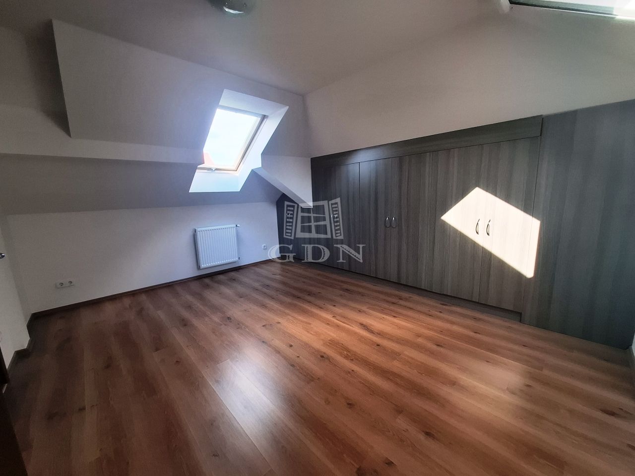 Felső szint: tágas nappali dolgozó sarokkal, 3 hálószoba, fürdőszoba zuhannyal.