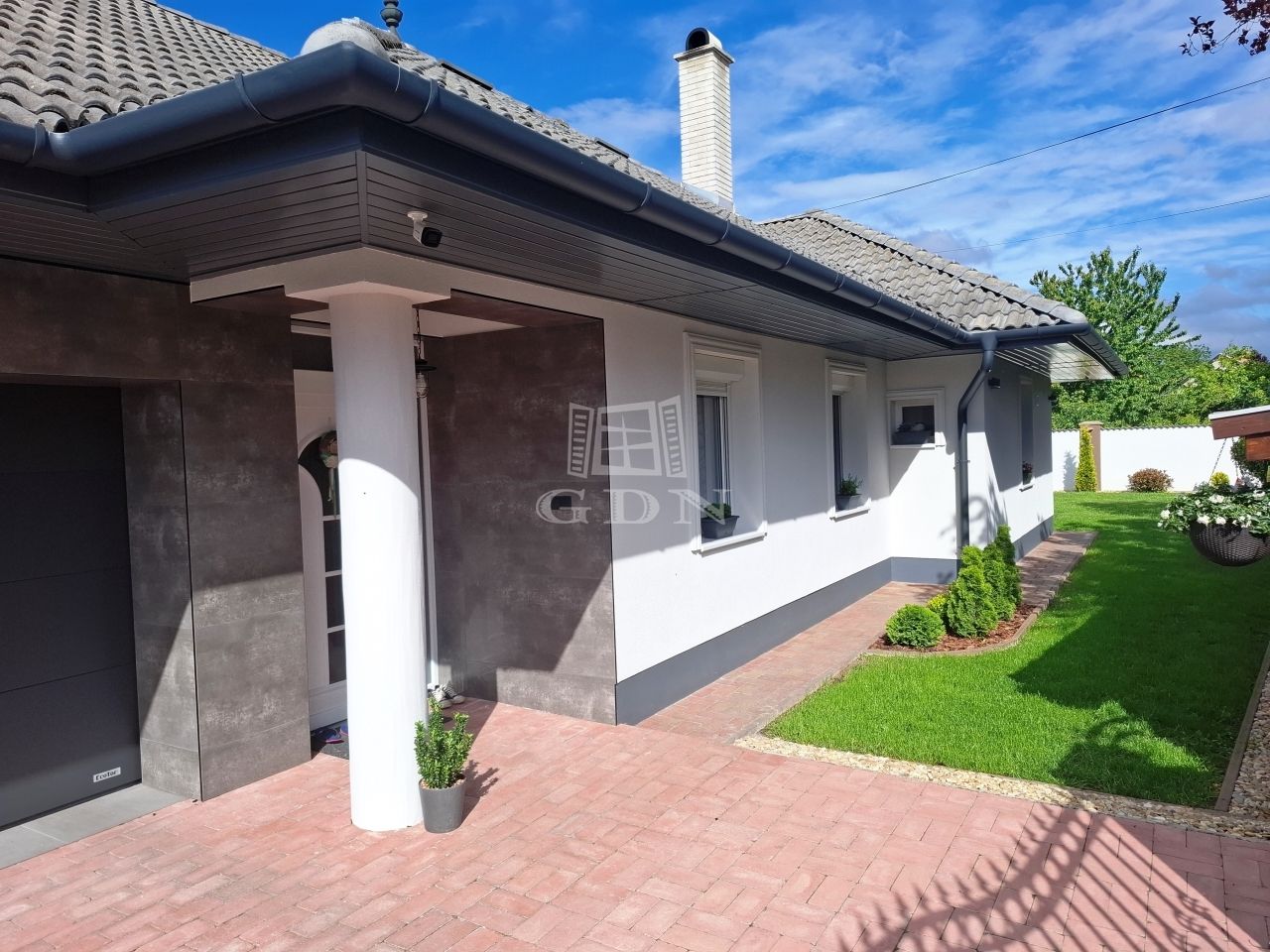 A 2003-ban épült ház egy 730 m²-es, gondosan karbantartott telken áll, melyet masszív betonkerítés és elegáns kovácsoltvas betétek ölelnek körbe. Az ingatlan 38-as Porotherm téglából, vasbeton födémmel és betoncserepes tetővel épült, külső hőszigetelését 15 cm-es Dryvit rendszer biztosítja. A modern műanyag nyílászárók thermo üvegezésűek, redőnnyel és szúnyoghálóval felszereltek.