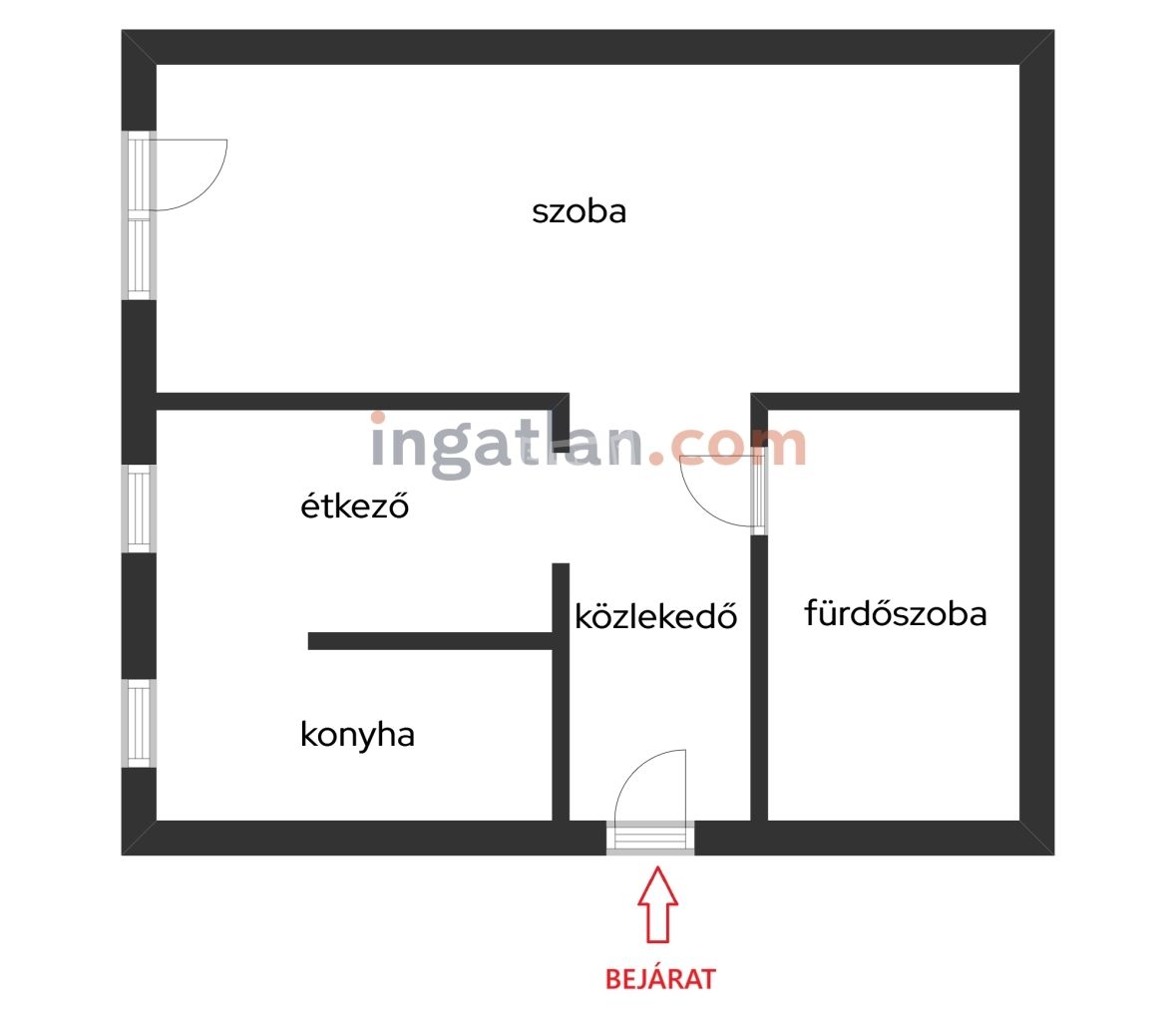 - a tágas, francia erkélyes szobán túl találunk a lakásban egy konyhát, étkezőt, sarkokkádas fürdőszobát (egyben a WC-vel), valamint egy közlekedőt