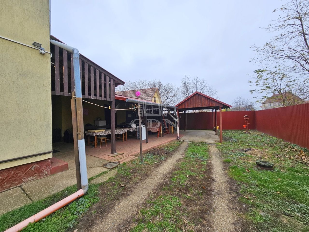 Az ingatlan minden oldalról körbe van kerítve. A főépület előtt lehetőség van virágok, díszfák, vagy konyhakert kialakítására. Az épület mögött elhelyezkedő garázshoz és autó beállóhoz gépkocsi beálló út vezet, melynek eredményeként akár 4-5 autónak is van hely.