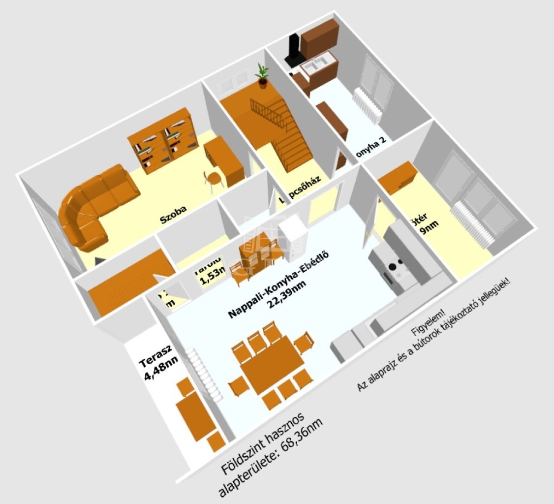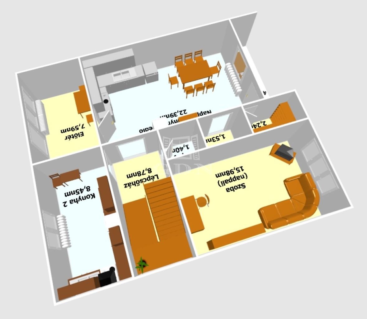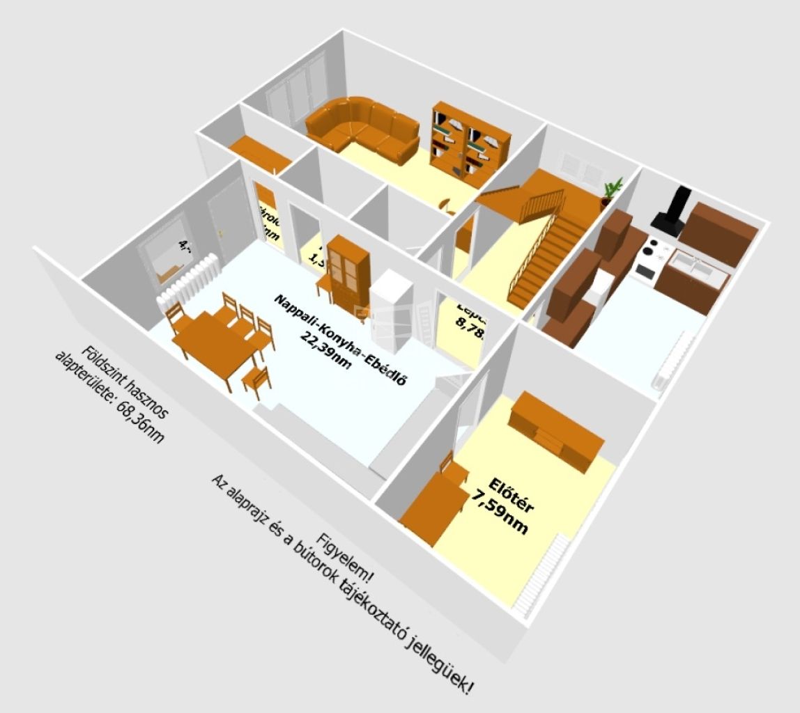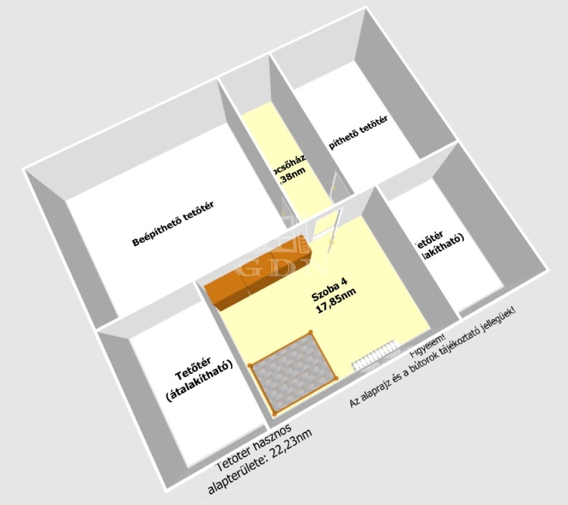 - a tetőtér (2. emelet) hasznos alapterülete: 22,23nm.