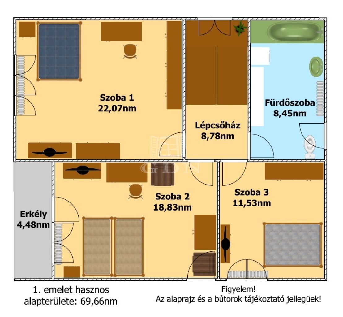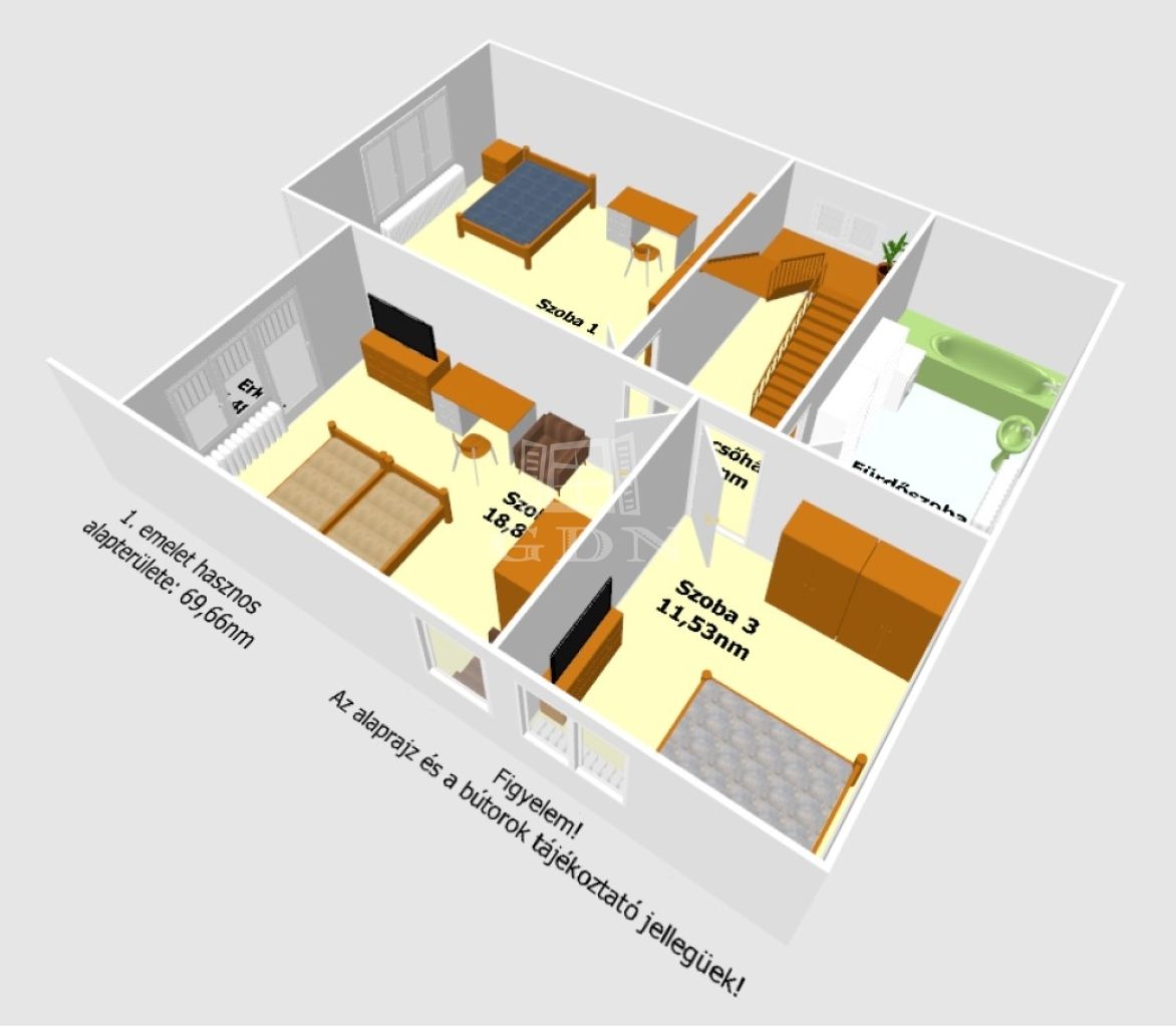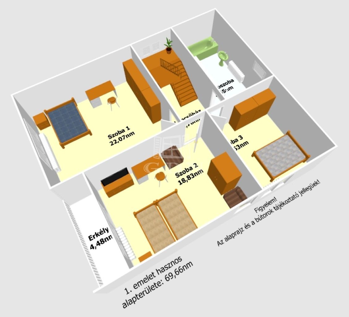 - az 1. emelet hasznos alapterülete: 69,66nm,