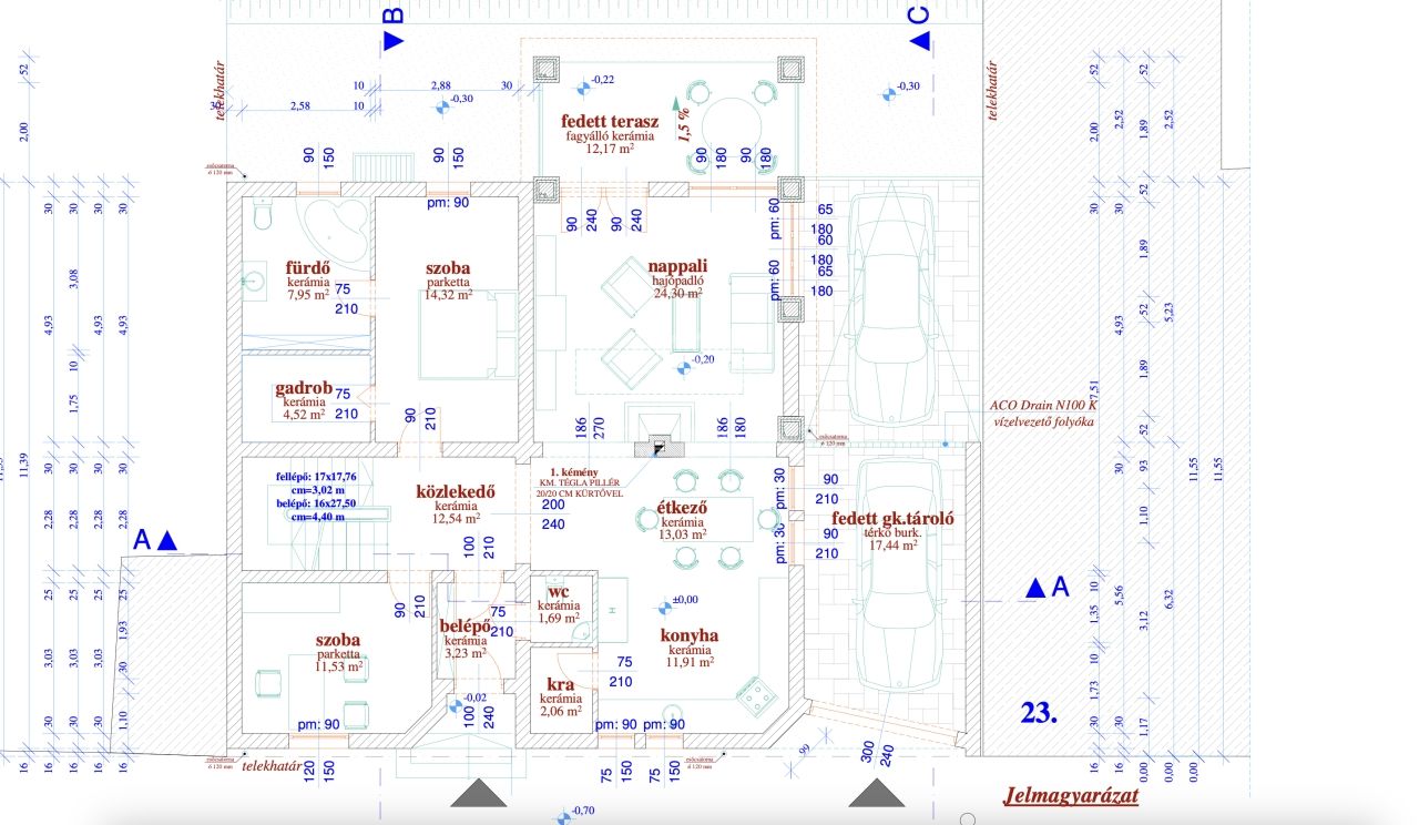 A ház bruttó 312 m2, nettó hasznos alapterülete: 270 m2.