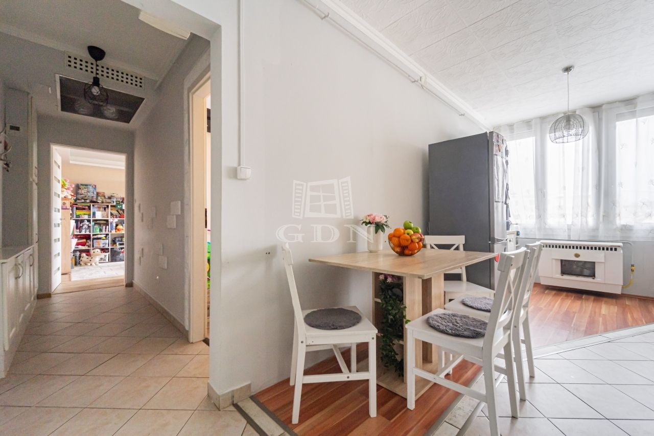 A 60 m2-es lakás a 4. emeleten helyezkedik el, keleti fekvéssel.